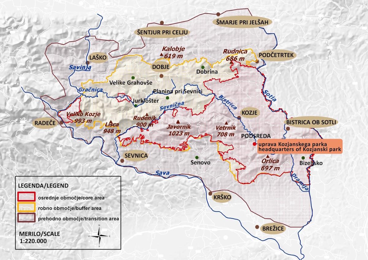 V območje je poleg petih parkovnih občin (Kozje, Bistrica ob Sotli, Podčetrtek, Brežice Krško) vključenih še šest ostalih občin (Sevnica, Laško, Šentjur, Dobje, Radeče in Šmarje pri Jelšah).