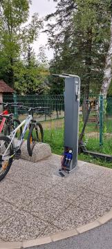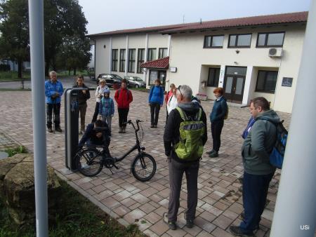 Evropski teden mobilnosti 2022 v Občini Šentjur se je podal tudi na teren - na medgeneracijskih pohod na Uršulo, ki ga je deževje prestavilo za en teden in se je odvijal 23. septembra, ter v okolico Slivniškega jezera že 18. septembra. Ker se naša kolesarska mreža širi, prav tako pa povečuje število navdušenih kolesarjev, smo poskrbeli za dve novi pridobitvi. Tako so v Dramljah in Gorici pri Slivnici bogatejši za servisni stojali za kolesa s tlačilko. Priročno, kajne? Kdo še ne pozna zagate, ko po nekaj vožnje od doma ugotovi, da so gume prazne ... Uporabo servisnih stojal je v okviru obeh pohodov ETM 2022 predstavil strokovni sodelavec občine Daniel Čoklc. Pa varno na kolesu!