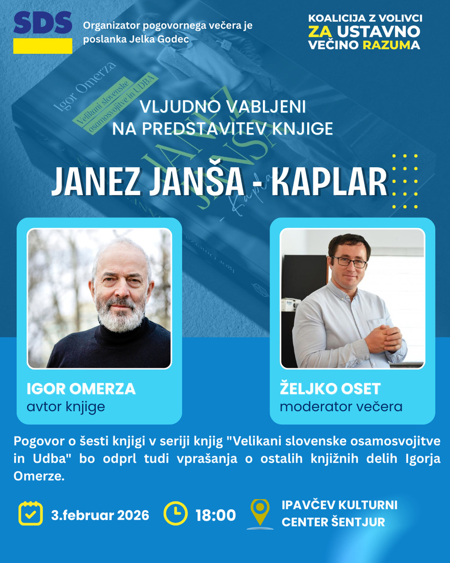 📢 Predstavitev knjige: Janez Janša - Kaplar Vabljeni na pogovorni večer o šesti knjigi v seriji knjig "Velikani slovenske osamosvojitve in Udba", ki bo odprl vprašanja tudi o ostalih knjižnih delih Igorja Omerze.