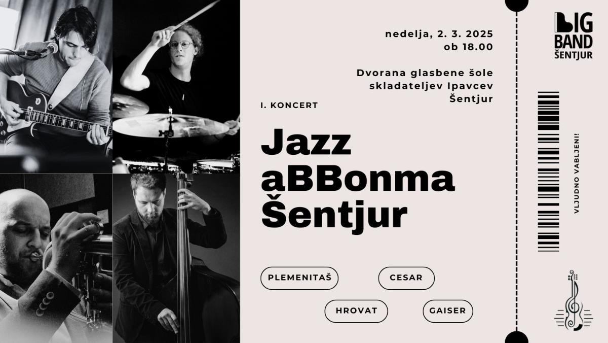 Big band Šentjur v sodelovanju z Glasbeno šolo skladateljev Ipavcev Šentjur predstavlja abonma jazzovske glasbe. Koncerti se bodo odvijali enkrat mesečno v dvorani glasbene šole (Ipavčeva ulica 17, 3230 Šentjur).