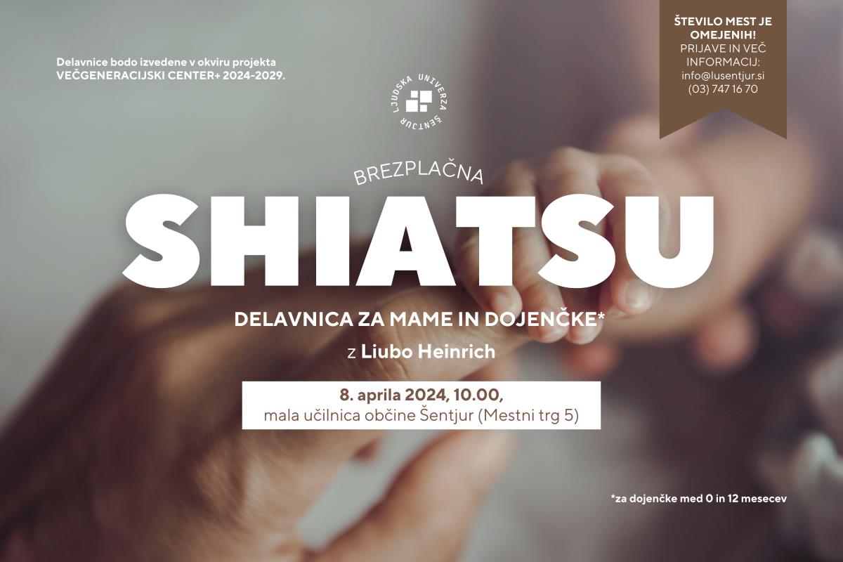 Zadnja brezplačna delavnica Shiatsu-ja z naslovom Nežna podpora po porodu: Shiatsu tehnike za mame in dojenčke bo potekala v torek, 8. aprila, ob 10.00 v mali učilnici Občine Šentjur.