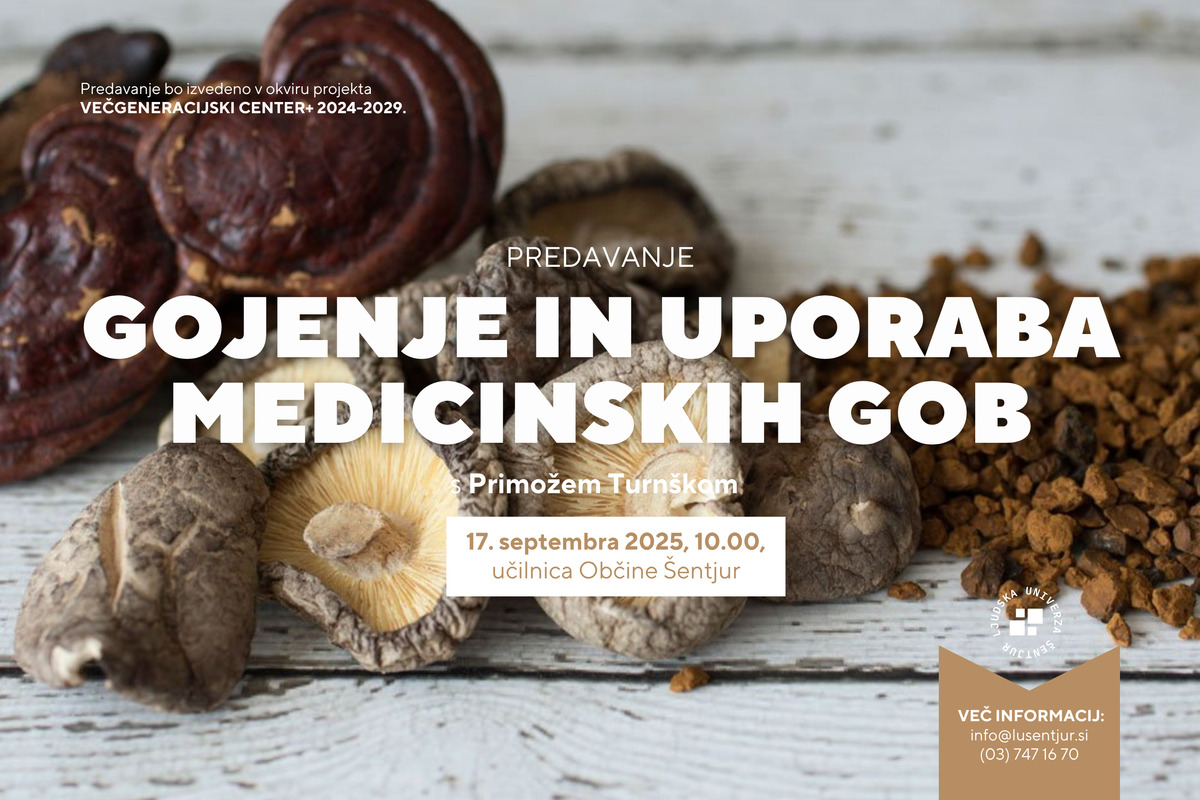 V pomladnem času je bilo zaradi bolezni predavanje odpovedano, zato vas ponovno vas vabimo na poučno predavanje o gojenju in uporabi medicinskih gob, ki ga bo izvedel mikrobiolog Primož Turnšek iz podjetja Gobnjak.
