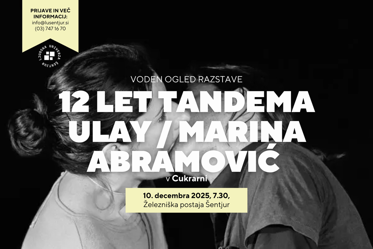 Z vlakom se bomo ob 7.33 odpravili v Ljubljano, kjer si bomo ogledali najbolj pričakovano razstavo leta v Sloveniji. Ponudila nam bo vpogled v obdobje med letoma 1976 in 1988 – dvanajstih let skupnega življenja in ustvarjanja umetniškega tandema Ulaya in Marine Abramović, dveh ključnih akterjev performativne umetnosti. Poleg kultnih dogodkov, zabeleženih v videih in fotografskih serijah, bo razstava obogatena s fotografijami, posnetki, pismi, knjigami in osebnimi zapiski, ki še niso bili predstavljeni javnosti.