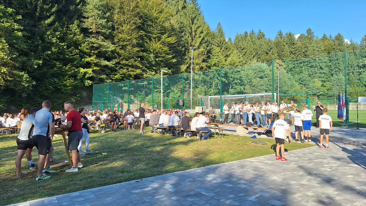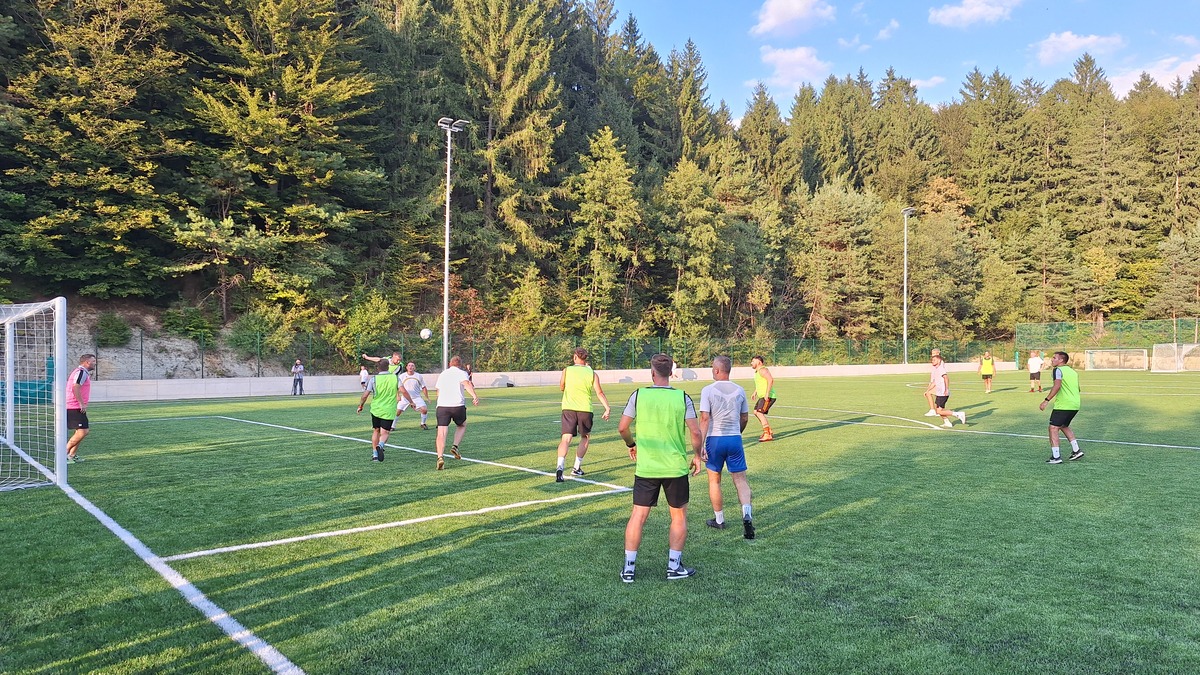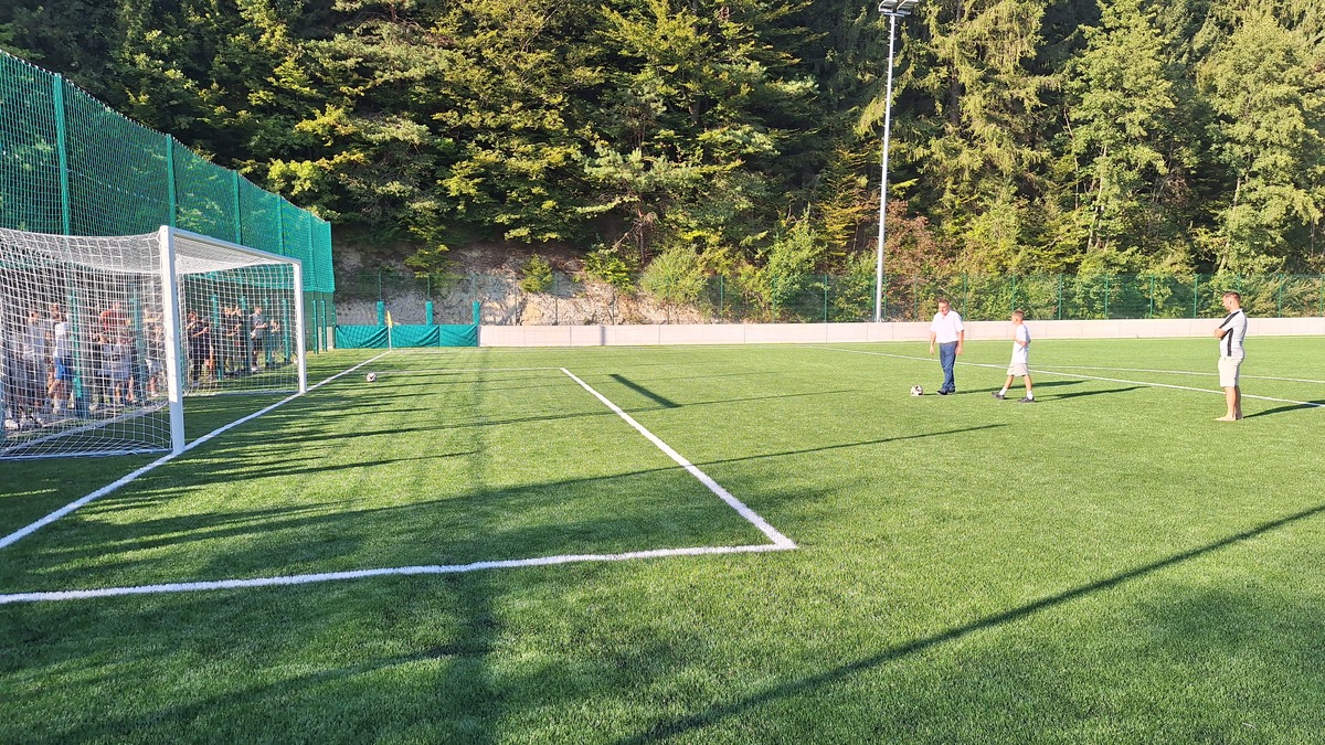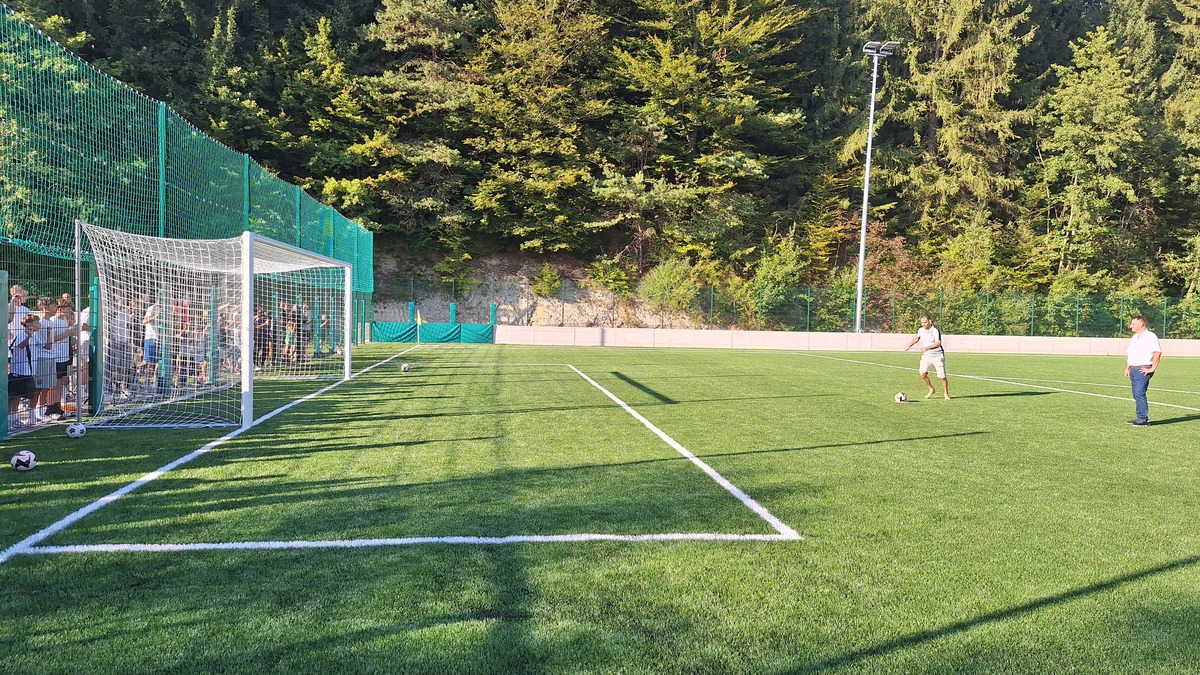 Župan mag. Marko Diaci in predsednik NK Jernej Leskovar sta zatem igrišče uradno otvorila še s simbolnima streloma na gol, ob asistenci mladega nogometaša, sledila pa je prijateljska tekma med ekipo župana ter ekipo NK, ki se je ob sojenju Leskovarja končala z neodločenim izidom. Nato pa so igrišče ponovno zasedli mladi nogometaši vseh selekcij, ki so na umetni travi s svojimi spretnostmi navduševali že pred uradnim začetkom prireditve.