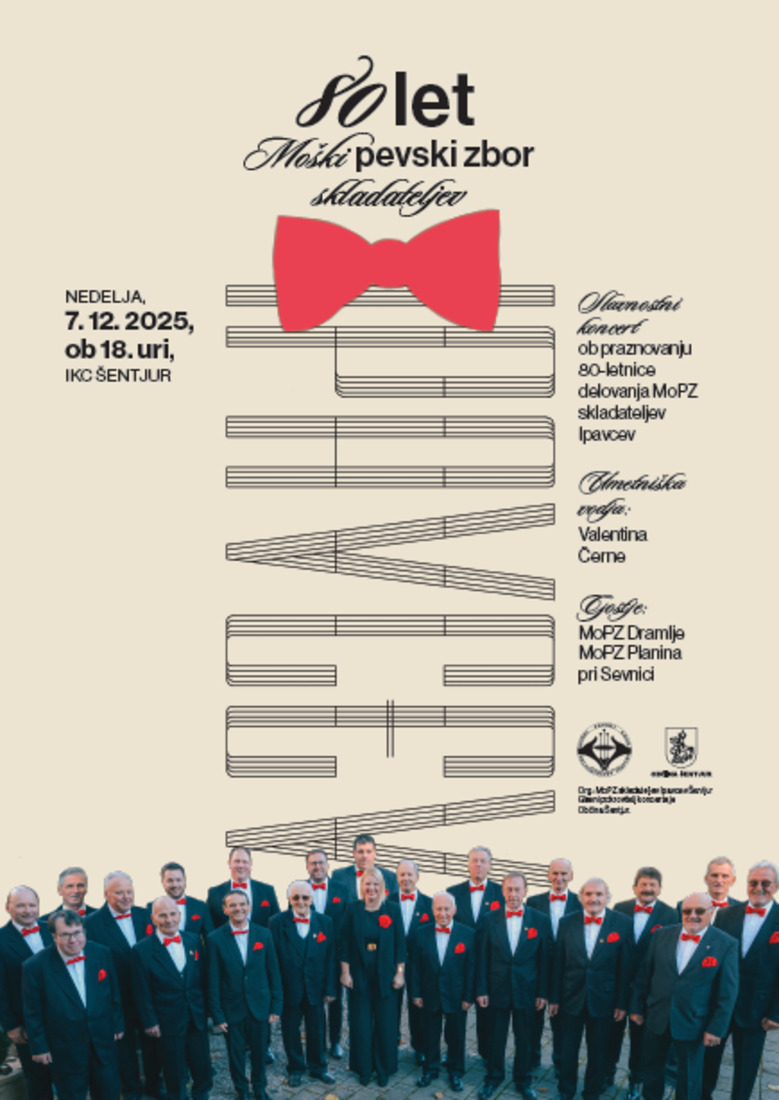 Koncert ob 80-letnici Moškega pevskega zbora skladateljev Ipavcev Šentjur z gostoma: Moškim pevskim zborom Dramlje in Moškim pevskim zborom Planina pri Sevnici