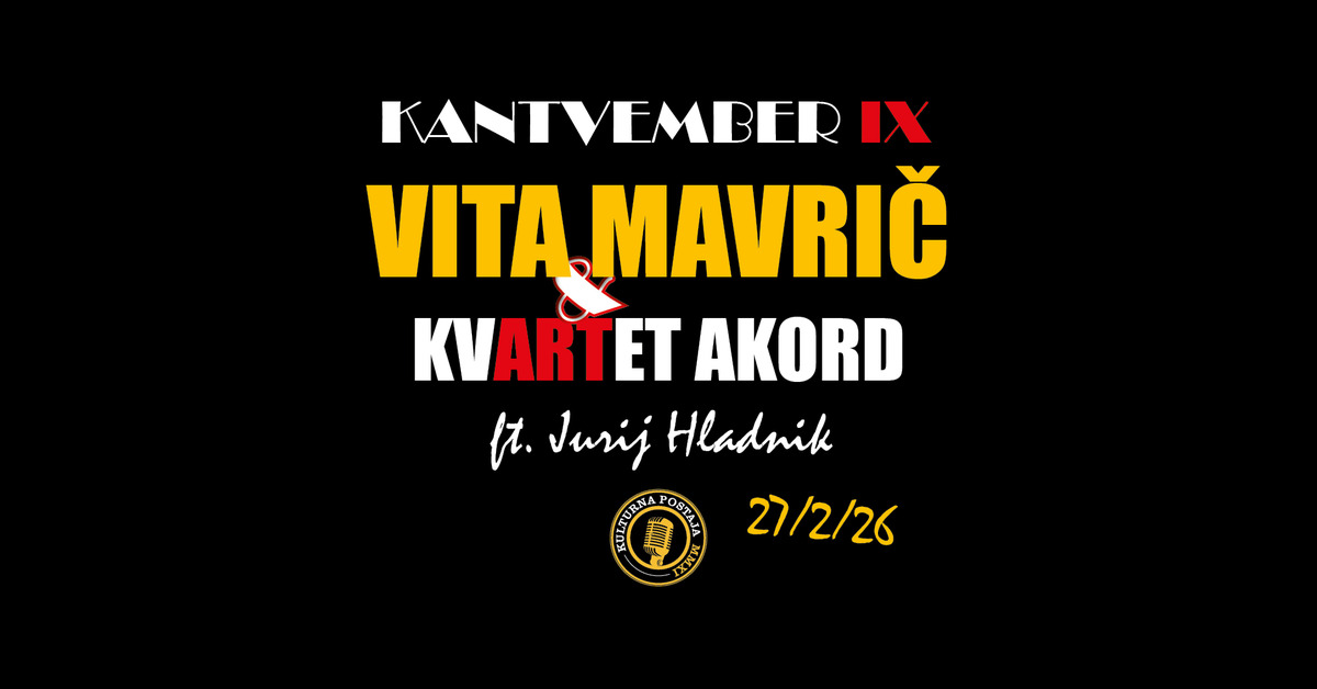 IX. KANTVEMBER pa se bo spogledoval s šansonom, saj v goste prihaja čudovita in legendarna VITA MAVRIČ. Družbo na odru ji bodo delali odličen KVARTET AKORD iz Celja in virtuoz na klarinetu ter dolgoletni dirigent Pihalnega orkestra Šentjur, JURIJ HLADNIK iz Šentjurja.