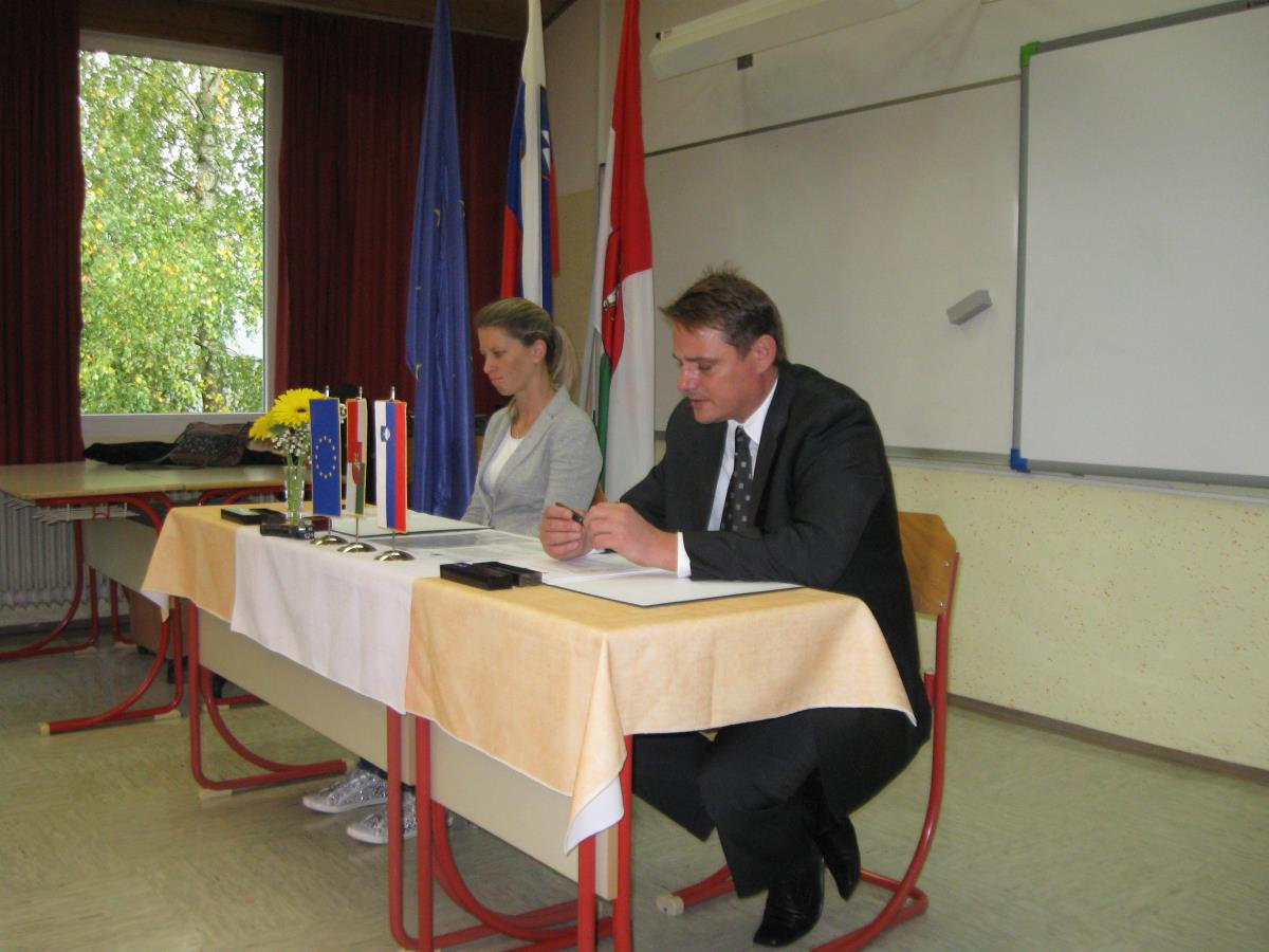 Občina se je v sklopu obnovitvenih del odločila še za zunanjo ureditev pri OŠ Slivnica pri Celju, za kar je župan mag. Marko Diaci pogodbo podpisal včeraj. Dela bo izvajalo podjetje GMI d.o.o. Slovenske Konjice, dobrega sodelovanja se nadeja tudi direktor Aleksander Marguč. Zunanja ureditev je sicer namenjena izboljšani prometni varnosti za vse udeležence, s poudarkom na šolarjih. Občina bo na obstoječem dotrajanem in premajhnem parkirišču pred šolo zgradila večnamensko parkirišče ter na njem uredila javno razsvetljavo. Cilj je zagotoviti ustrezne količine parkiranja za zaposlene (41 parkirnih mest za osebne avtomobile, od tega 2 za invalide in eden za električne avtomobile), zagotoviti varnost otrokom, ki čakajo na javni prevoz, omogočiti šolskemu avtobusu krožno obračanje, ter modernizacija parkirišča s polnilnico za električna vozila. Poleg naštetega se na postajališču za šolski avtobus zgradi nadstrešnica. V sklopu zunanje ureditve se bo rekonstruirala tudi dovozna cesta k šoli. Vrednost pogodbenih del znaša 314.000, pričela se bodo v juniju.