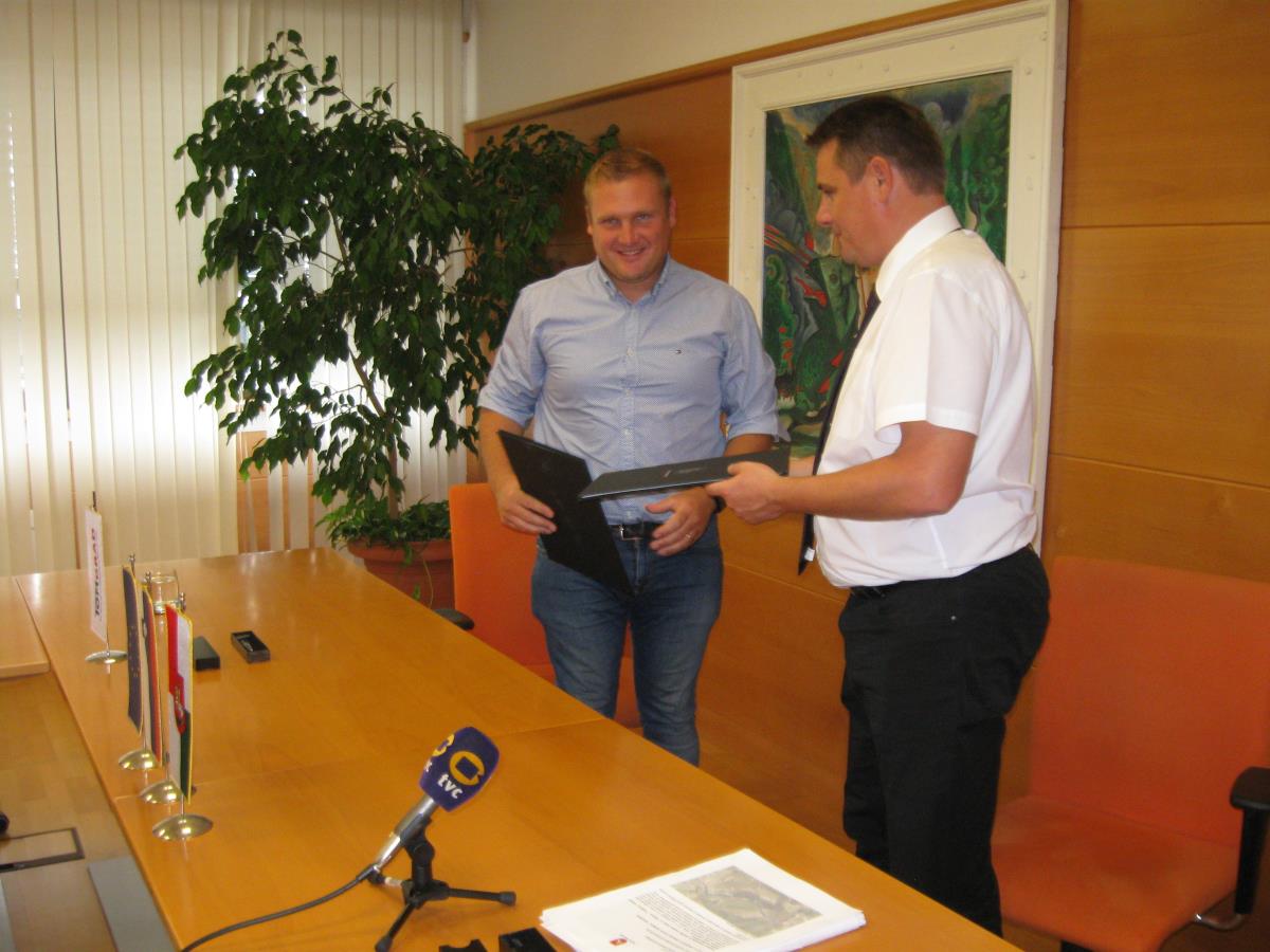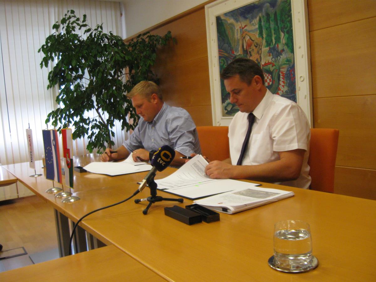 Župan mag. Marko Diaci je danes podpisal pogodbo za izvedbo del, obnovo 845 metrov dolgega odseka lokalne ceste Pešnica – Podgrad.