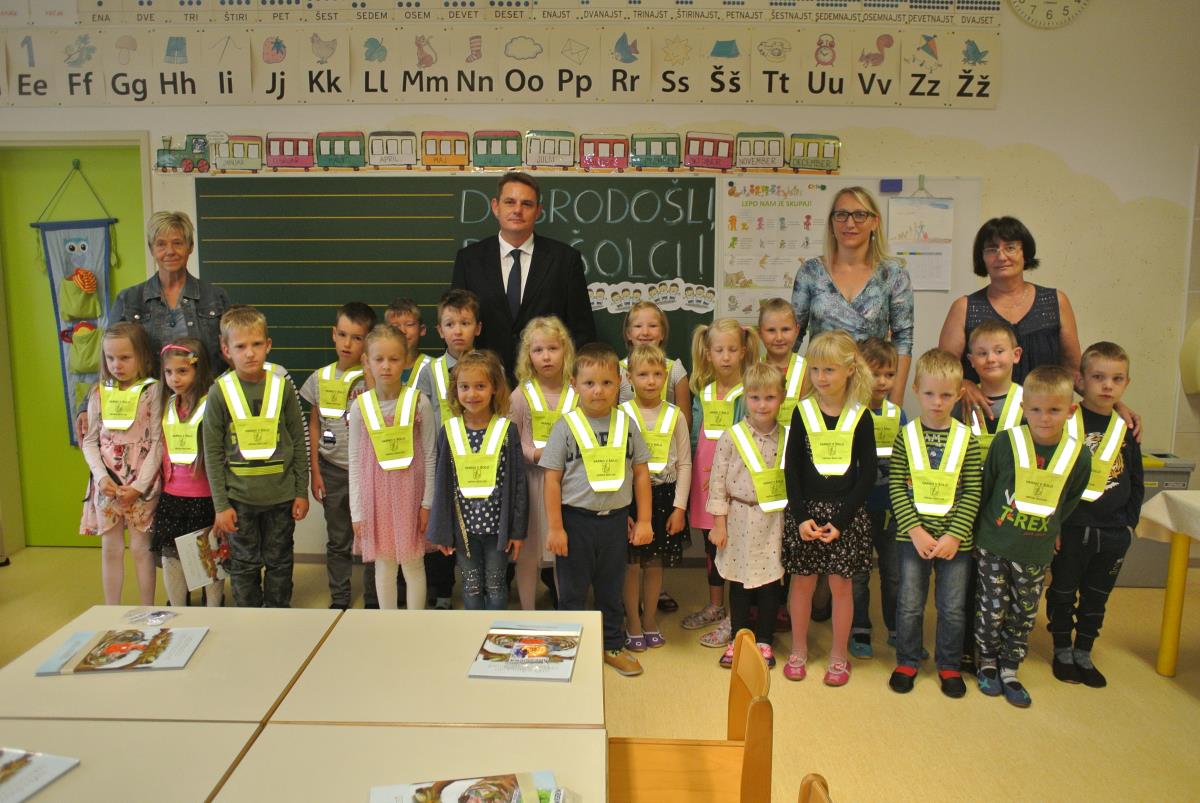 Župan Občine Šentjur mag. Marko Diaci je v ponedeljek, 3. septembra, ob začetku novega šolskega leta tradicionalno obiskal vse osnovne šole, podružnice in nekatere vrtčevske enote. Pozdravil je kolektive, ravnatelje, starše, največ pozornosti pa je veljalo letošnjim prvošolcem, ki jih je letos 196. Pri tem jih je še posebej opozarjal na varnost v prometu. Otroci so za večjo vidnost v prometu prejeli rumene rutice in kresničke. V spomin na vstop v šolo pa je župan vsem prvošolčkom podaril slikanico Dežni škrat in nezadovoljni ptič.