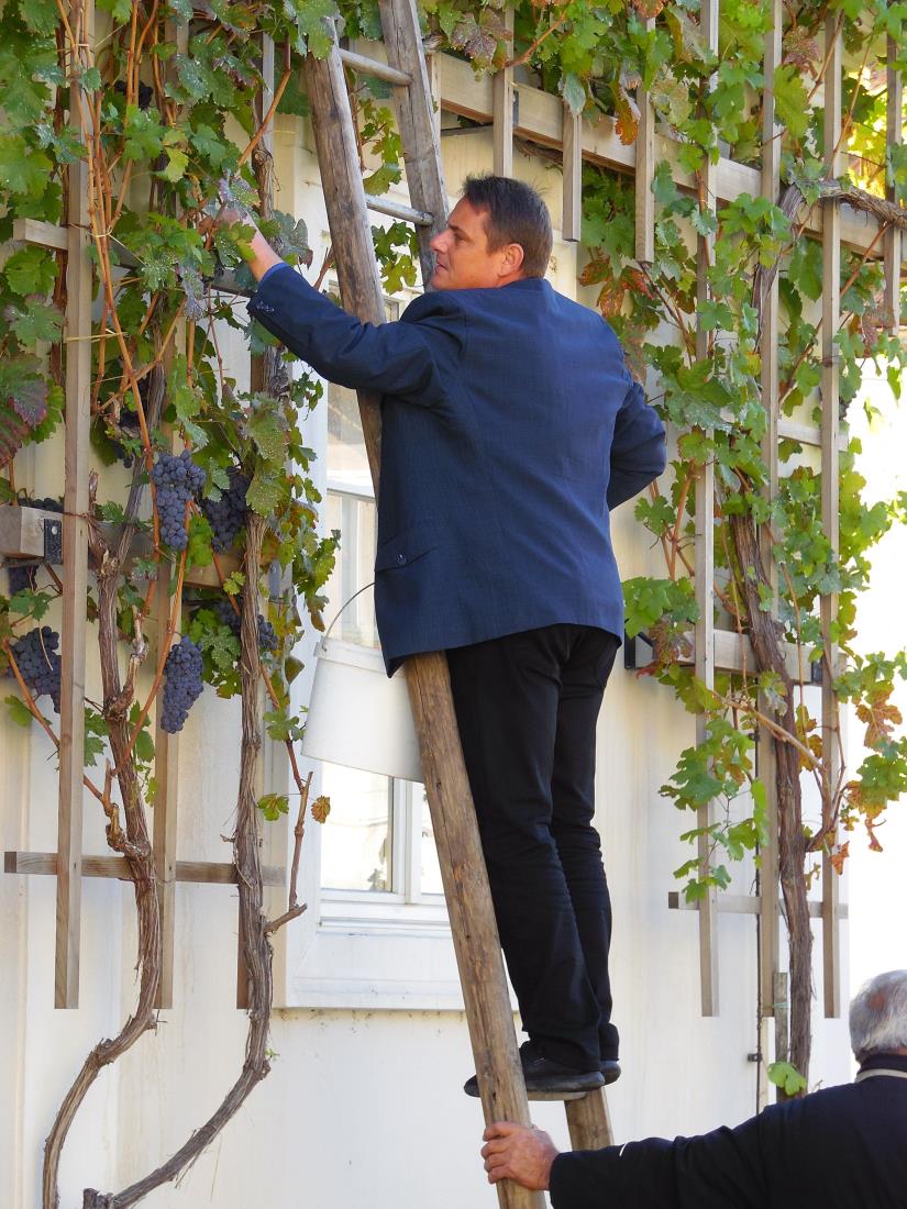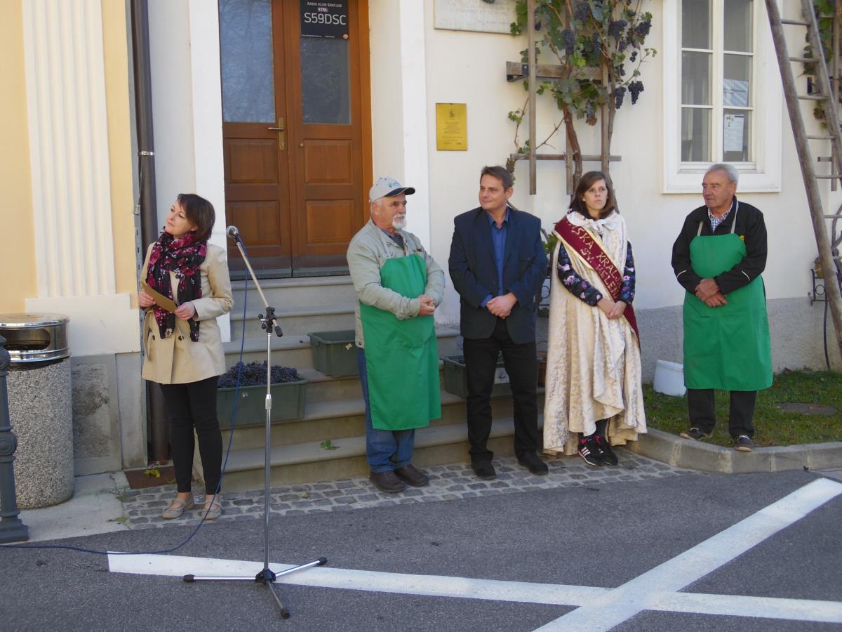 Zadnjo letošnjo septembrsko nedeljo smo se zbrali v Zgornjem trgu in potrgali šentjursko potomko najstarejše trte na svetu, mariborske modre kavčine. Tudi leto je dobro rodila.
