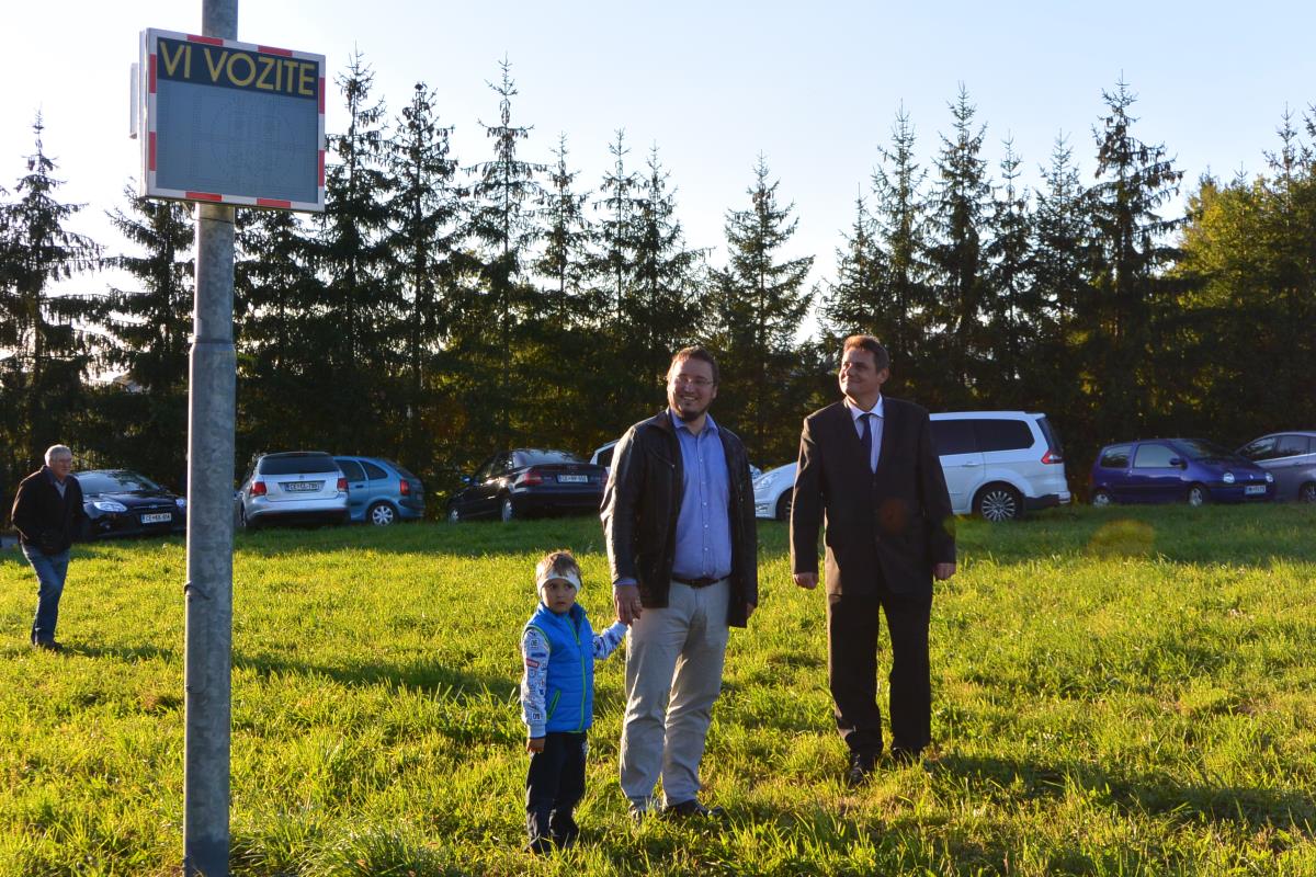 Ob tej priložnosti sta se župan in predsednik sveta KS Blagovna podala k prikazovalniku hitrosti in spomnila na nujnost upoštevanja prometnih pravil in pomen naprave za večjo prometno varnost v okolici šole. Prikazovalnik je Občina Šentjur prejela v desetmesečni brezplačni najem s strani Javne agencije za varnost v prometu v okviru njihovih preventivnih akcij in se odločila, da ga tokrat postavi na Blagovni, ter s tem dodatno opozori mimovozeče, da se nahajajo v neposredni bližini najbolj ranljivih v prometu, zato naj le stopijo s plina.