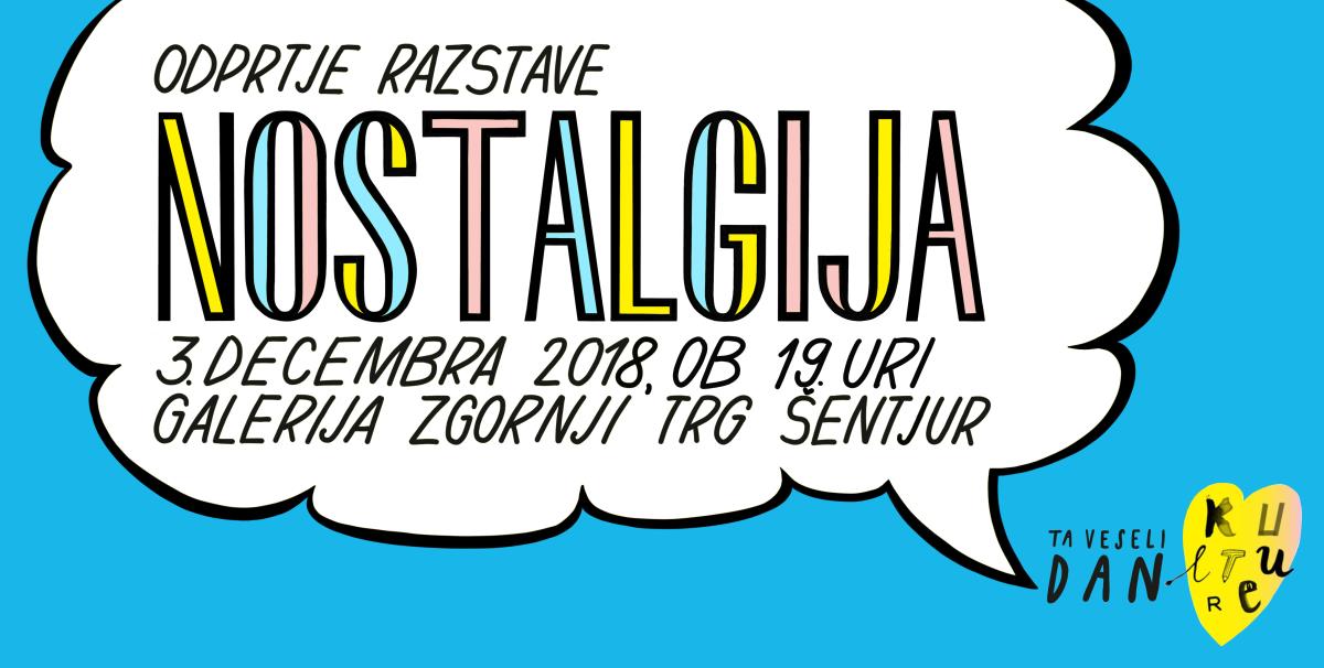 Vljudno vabljeni v ponedeljek, 3. decembra 2018, ob 19. uri v Galerijo Zgornji trg Šentjur na odprtje razstave z naslovom Nostalgija ob Tem veselem dnevu kulture. Na ogled bodo postavljena dela likovnega študijskega krožka Ljudske univerze v Šentjurju. Kulturnemu programu bodo glasbeno noto dodale članice Ženskega pevskega zbora skladateljev Ipavcev Šentjur. Zveza kulturnih društev Šentjur bo na osrednji prireditvi ob Tem veselem dnevu kulture podelila posebni priznaji.