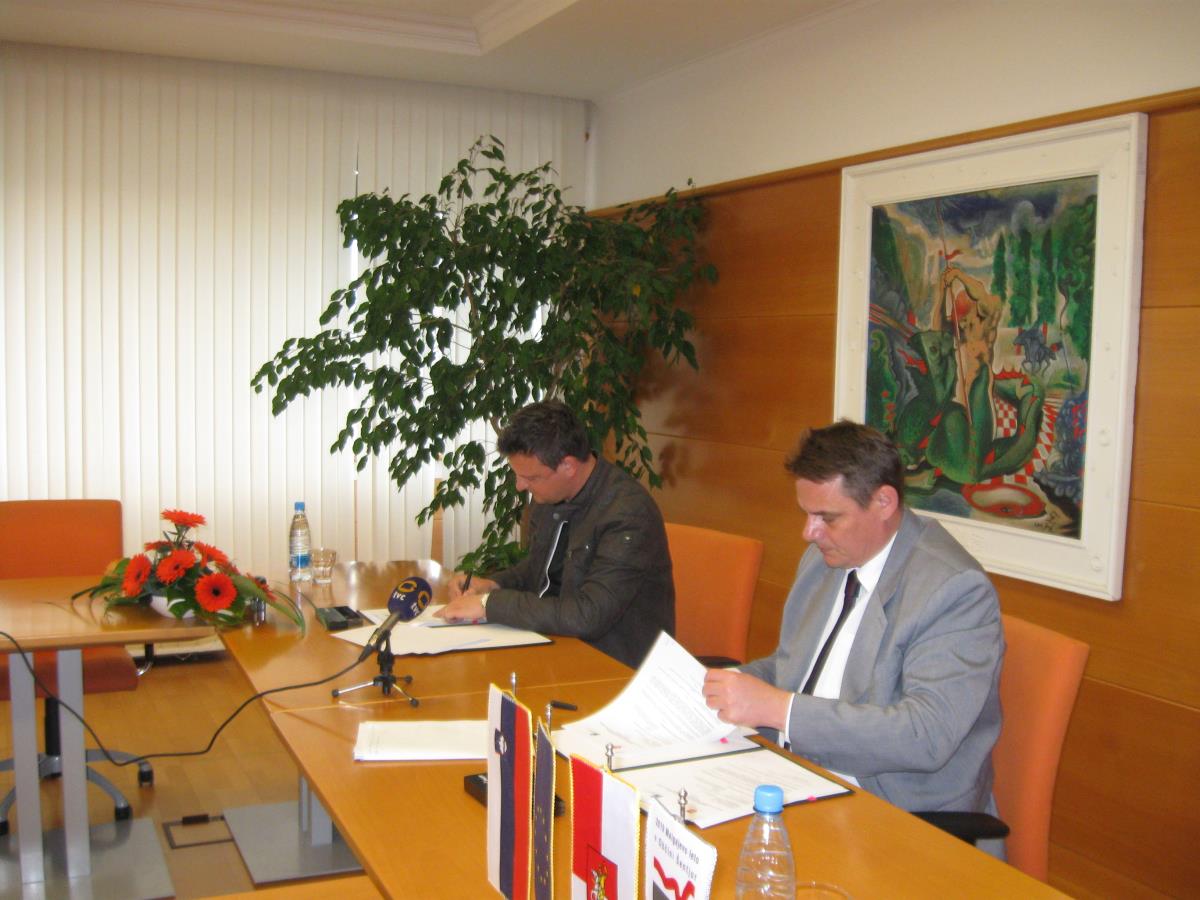 Župan mag. Marko Diaci je v četrtek, 11. aprila, podpisal pogodbo iz izvajalcem del, ki bo uredil preostanek kolesarske steze in površine za pešce ob Pešnici skozi mestno središče.
