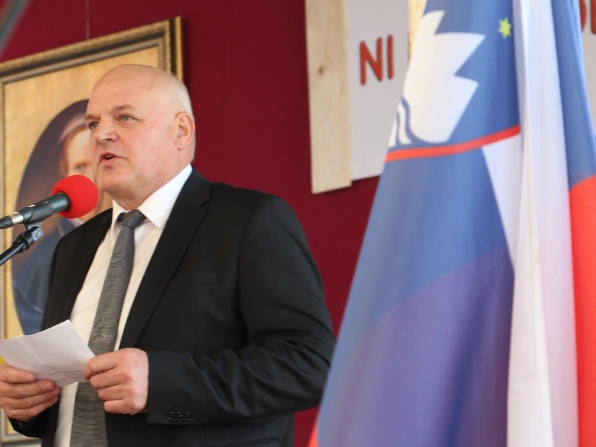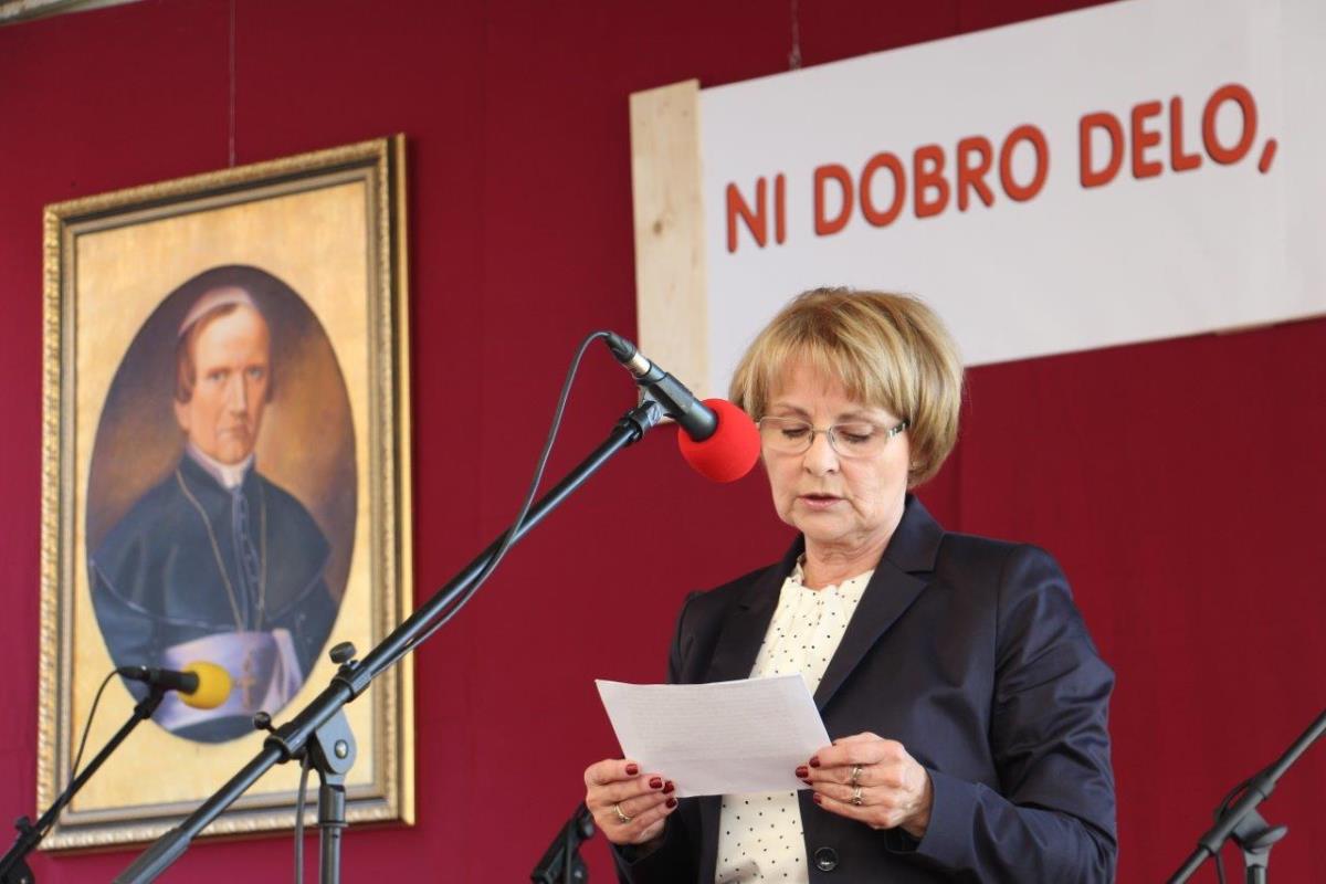 Na svečani akademiji pred rojstno hišo blaženega Antona Martina Slomška na Slomu je prisotne pozdravila podžupanja
