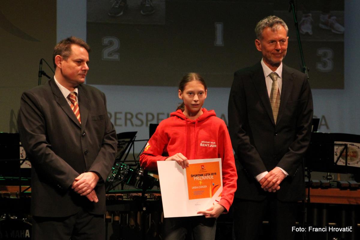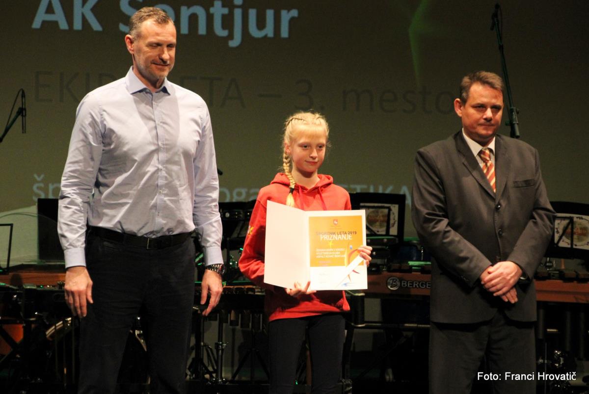 Zbrane najboljše športnike, predstavnike klubov in ekip iz naše občine je v polni dvorani v imenu športne zveze pozdravil Dušan Debenak,z županom mag. Markom Diacijem pa sta uvodoma podelila priznanje za naj rekreativni športni dosežek. Prejel ga je Danilo Frlež iz Združenja kolesarjev Šentjur Power, ki je opravil s posebnim ekstremnim izzivom, brez prestanka je premagal višinsko razliko 8.848 m (višina Mt. Everesta) tako, da je 44-krat zaporedoma premagal Resevno. Sledil je sklop priznanj mladim perspektivnim športnikom, prejeli so jih Martin Artnak, Nej Dobovišek in Urška Ogrizek iz Atletskega kluba Asfalt Kovač Šentjur, Taja Gabrovec Voršnik, Evelin Korez, Klara Medved, Marko Pečar Liubimirescu in Jaša Vrečko iz Taekwon-do kluba Ahac ter Živa Čurčič in Otroška hip hop skupina Sweetas Plesnega društva TBA, ki je na prireditvi navdušila tudi z nastopom.
