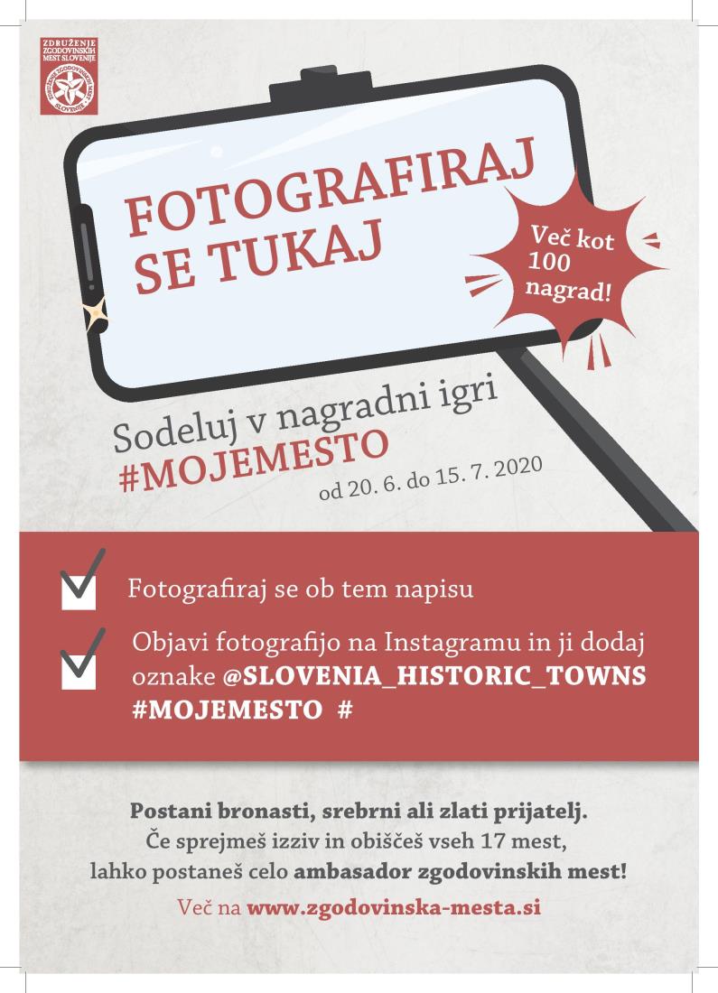 Nagradna igra #mojemesto vas spodbuja, da med 20. junijem in 15. julijem 2020 obiščete čim večje število zgodovinskih mest (Idrija, Celje, Jesenice, Kamnik, Koper, Kostanjevica na Krki, Kranj, Metlika, Novo mesto, Piran, Ptuj, Radovljica, Slovenske Konjice, Šentjur, Škofja Loka, Tržič in Žužemberk) in si tako pridobite status bronastega, srebrnega ali zlatega prijatelja zgodovinskih mest, najbolj zagreti pa boste lahko postali celo ambasadorji zgodovinskih mest Slovenije.