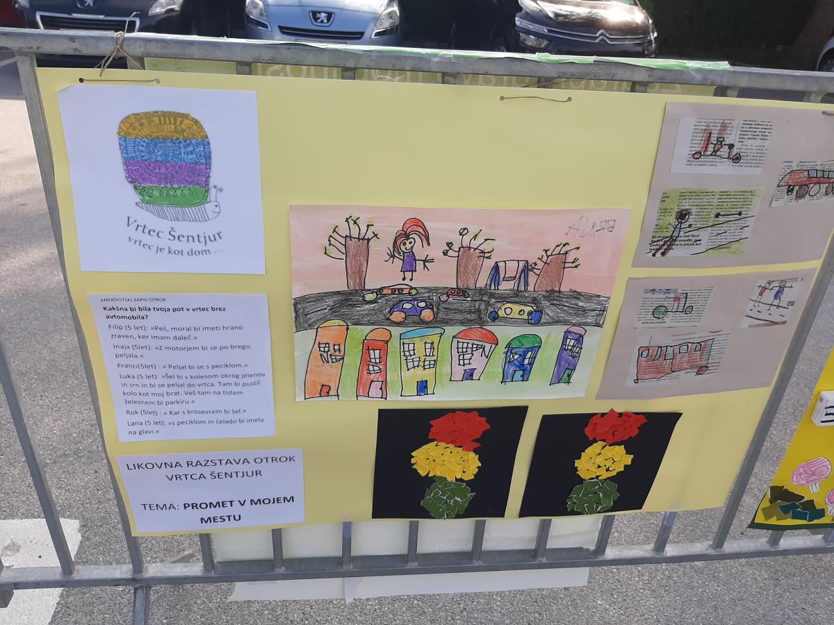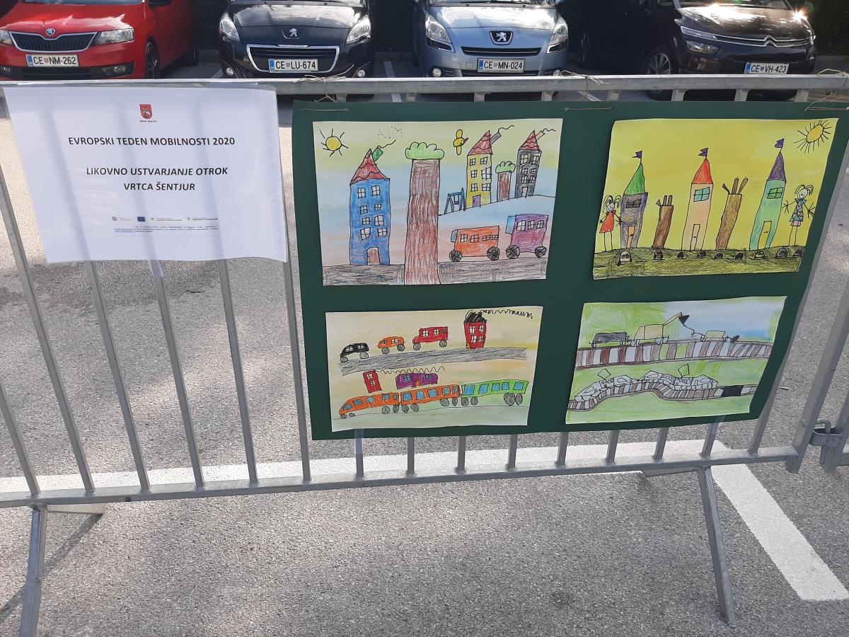 Njihove izdelke smo 21. septembra razstavili na ograji prizorišča Parkirnega dne, nato pa jih skrbno pospravili, da jih ne bi uničil napovedani dež. Med njimi smo izbrali tudi zmagovalno risbico Ele Vite Kolar iz 5. razreda, ki je bila objavljena v časopisu Šentjurčan. Otroci iz vrtca pa so pod budnim očesom vzgojiteljic ustvarjali na temo mobilnosti in trajnosti ter vzgoje v prometu znotraj svojih vrtčevskih enot. Hvala tudi vsem drugim šolam, ki so se glede na zmožnosti in potovalne navade znotraj svojih krajevnih skupnosti vključili v širše dogajanje v Evropskem tednu mobilnosti, npr. Pešbus in podobno. Ter čestitke vsem šolarjem, ki so v minulih dneh uspešno opravili kolesarski izpit.