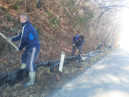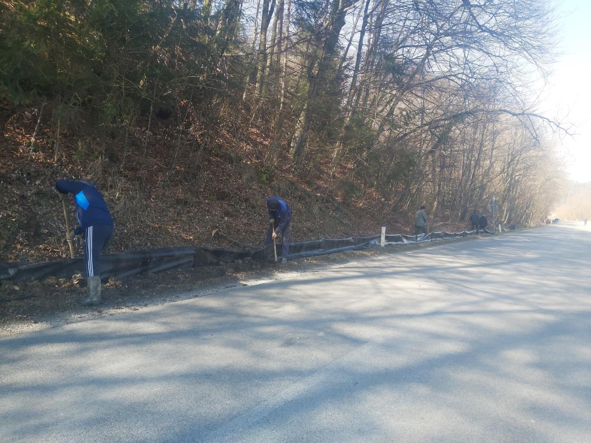 Člani ŠD Dobrina so v nedeljo, kot že leta doslej, poskrbeli za postavitev začasne ograje, s katerimi usmerjajo dvoživke na poti iz gozda na mrestišča v Slivniškem jezeru, na podhode pod cesto.
