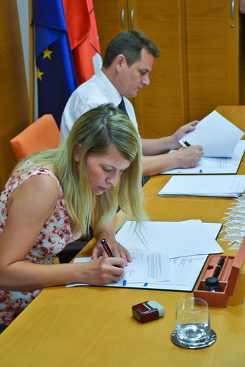 Župan Občine Šentjur mag. Marko Diaci je danes, v sredo, 6. julija 2016, podpisal pogodbi z na javnih razpisih izbranimi izvajalci del, ki bodo pričeli z delom na projektih Celovita obnova strehe starega objekta OŠ Franja Malgaja Šentjur in Gradnja prizidka k objektu POŠ in enote vrtca Blagovna. Obe investiciji v celoti financira Občina Šentjur.