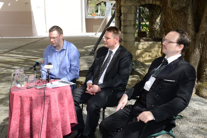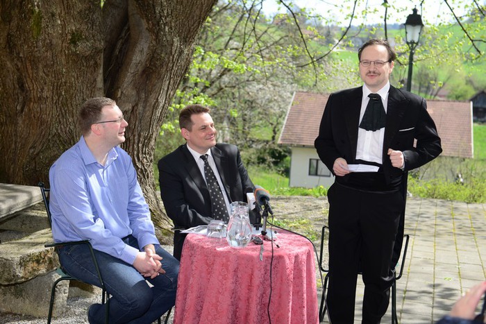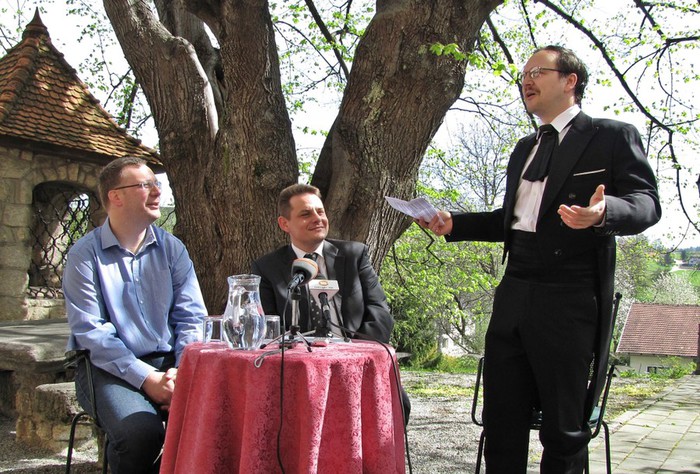 V vrtu Ipavčeve hiše v šentjurskem Zgornjem trgu so včeraj, v sredo, 15. aprila, predstavili Šentjurjevo 2015. Dobrodošlico na osrednji turistični prireditvi občine je vsem obiskovalcem, ki bodo prišli, izrekel župan Občine Šentjur mag. Marko Diaci, program pa je podrobneje predstavil predsednik Mestne skupnosti Šentjur Jure Raztočnik.