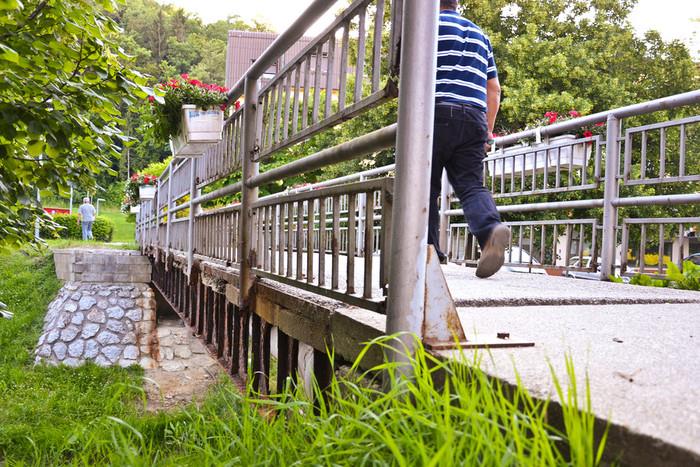 Z začetkom avgusta so se pričela tudi dela na mostu, ki povezuje dva bregova Pešnice ter glavni trg (Mestni trg v Šentjurju) s parkiriščem hotela Žonta. Stari mostiček je bil zaradi preperelih jeklenih nosilcev in ograje že povsem dotrajan, zato je bilo nujno konstrukcijo odstraniti v celoti. Na tem mestu bo narejen novi most, saj je na tem območju precejšnja frekvenca peščev. Tudi novi most bo namenjen zgolj pešcem in se bo na desnem bregu potoka navezal na obstoječo ureditev poti, na levem bregu pa bo narejeno novo stopnišče do mostu s klančino za dostop funkcionalno oviranim osebam. Most bo v leseni izvedbi s stekleno kaljeno ograjo in leseno podkonstrukcijo, ter bo nekoliko širši, kot je bil dosedanji.