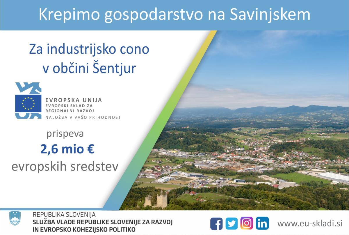 Občina Šentjur je za izvedbo projekta Komunalno urejanje industrijske cone Šentjur jug - 3 uspešno pridobila sredstva Evropskega sklada za regionalni razvoj.