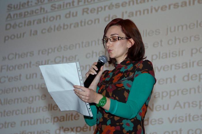 Na glavna prireditvi, ki je bila v njihovi kino dvorani, so ob tej priložnosti prikazali 75 minutni film. Prikazoval je 30 letno druženje. V filmu so precej minut namenili tudi druženju z občani Šentjurja. Po filmu so imeli pozdravne govore, župan mesta Saint Florent sur Cher in predstavnika županov iz Neu Anspacha in Šentjurja.