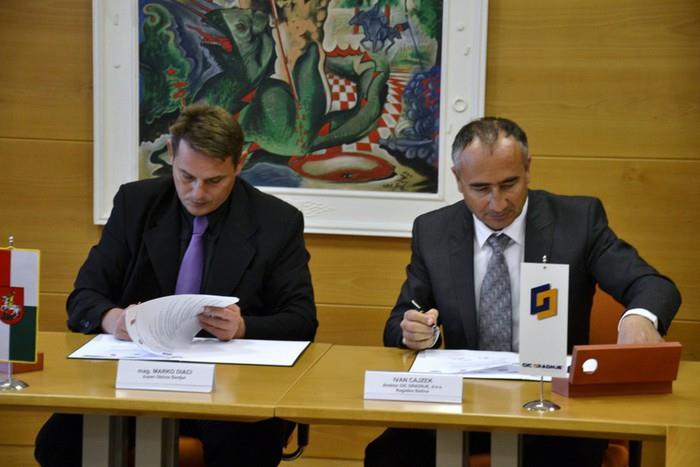 Župan Občine Šentjur mag. Marko Diaci je v torek, 22. maja 2012, z direktorjem podjetja Gic gradnje , d. o. o. Ivanom Cajzekom, izbranim izvajalcem gradnje, podpisal pogodbo za Ureditev vaškega jedra na Ponikvi – 1. faza.
