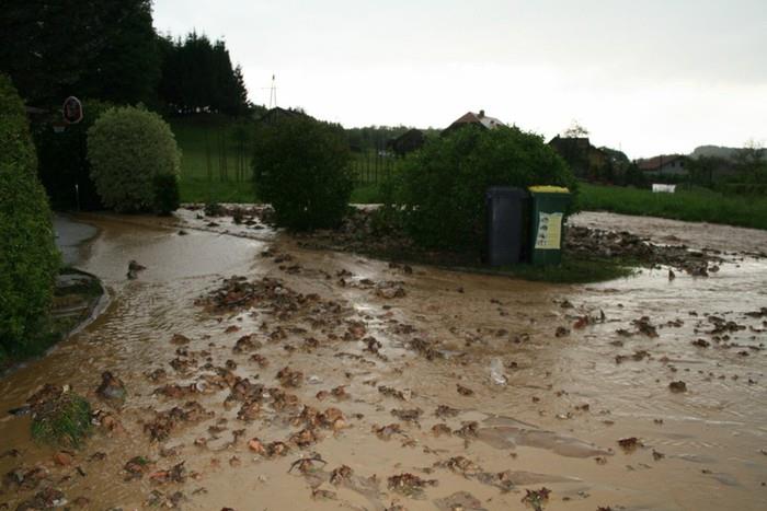 V petek, 4. maja, je območje občine Šentjur okoli 18. ure zajelo močno deževje, ponekod tudi s točo. Padavine so bile tako intenzivne in silovite, da je voda zalivala ceste ter objekte.