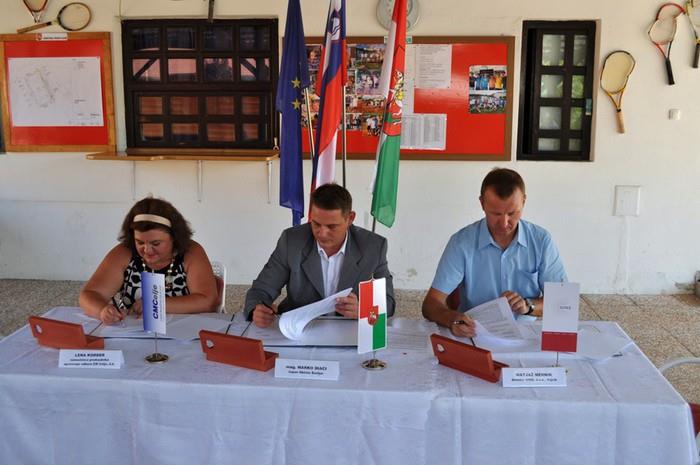 Včeraj je župan mag. Marko Diaci z namestnico predsednika upravnega odbora CM Celje d. d. Leno Korber in direktorjem podjetja Gins d. o. o. Matjažem Mernikom podpisal pogodbe za izvedbo del in nadzora prenove igrišča za mali nogomet v Športnem parku Šentjur.