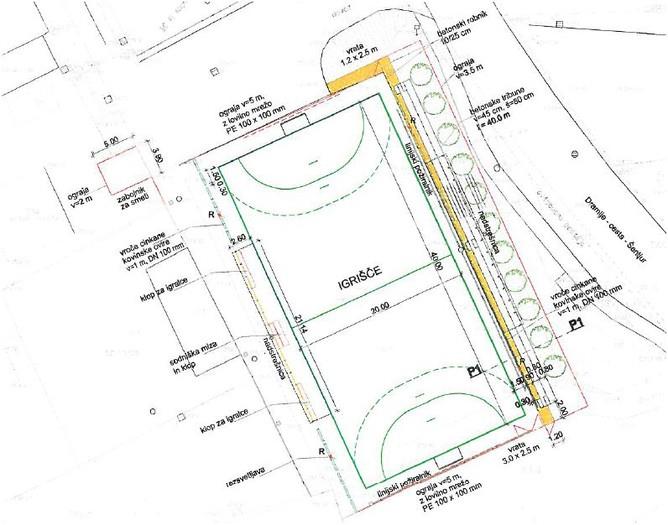 Predmet investicije je prenova dotrajane športne površine v okviru Športnega parka Šentjur, in sicer posodobitev igrišča za mali nogomet. Nova ureditev zajema: preplastitev in delno povečanje obstoječe asfaltne ploščadi z umetno finalno obdelavo, ureditev odvodnjavanja, zgraditev betonskih tribun, izvedbo nadstrešnice za sodnike in igralce, nadstrešnice na tribuni za gledalce, dobavo nove opreme, razsvetljavo igrišča, postavitev nove ograje z lovilno mrežo za goli ter postavitev ograje, ki bo omejevala igrišče proti cesti oziroma pločniku. Postavitev ograje proti prometni regionalni cesti bo izboljšala varnost v tem delu mesta, saj so doslej športni rekviziti mnogokrat leteli na cesto.