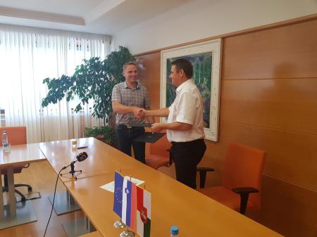 Župan Občine Šentjur mag. Marko Diaci je v ponedeljek, 1. avgusta, podpisal pogodbo s predstavnikom na javnem razpisu izbranega podjetja Lesnina MD oprema d. d., Ljubljana, Matijo Čeponom, podpisal pogodbo za rekonstrukcijo atletske steze v Športnem parku Šentjur. Občina je za projekt uspešno pridobila sofinancerska sredstva Fundacije za šport.