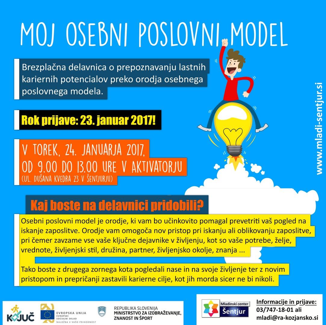 Osebni poslovni model je orodje, ki vam bo učinkovito pomagalo prevetriti vaš pogled na iskanje zaposlitve. Orodje vam omogoča nov pristop pri iskanju ali oblikovanju zaposlitve, pri čemer zavzame vse vaše ključne dejavnike v življenju, kot so vaše potrebe, želje, vrednote, življenjski stil, družina, partner, življenjsko okolje, znanja ...