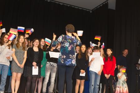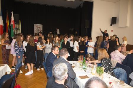 Po večerji pa so se predstavili mladi, ki so letos ustvarjali pod geslom ‘Skupaj v radosti’. Mladinsko izmenjavo že 13 let skupaj organizirajo Mladinski center Šentjur, Comité de Jumelage de Saint Florent in Verein zur Förderung Internationaler Beziehungen Neu-Anspach, ob podpori občin ter sredstev Evropske Unije. Letos je mlade iz Nemčije in Francije gostila Osnovna šola Dramlje.