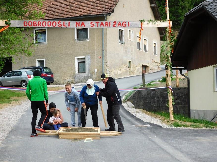 Za otvoritev so krajani pripravili pravi praznik – postavili so mlaja z napisom dobrodošlice, geslo »Žiga žaga, Žaga zmaga!« pa se je znašlo na ročno izrisani zastavi, na majicah in slavnostni torti. Uvod v slovesnost so začinili s kratkim humorističnim skečem, v katerem so ponazorili svoj vsakdan ob gradnji ceste v lanskem letu, svoja pričakovanja in dnevna opazovanja napredka izvajalca del. Župan mag. Marko Diaci je izrazil veselje nad uspešno izvedenim projektom ter ugotavljal, da so krajani aktivno pristopili k obnovi, kar pomeni, da je bila odločitev za obnovo tega odseka pravilna. »V Občini Šentjur imamo skupno za kar okoli 800 km cest, zato je seznam cest, potrebnih obnove, zmeraj dolg. Na Stari žagi ste res dolgo čakali, a ste tudi dočakali,« je povedal župan, ki je v nagovoru omenil tudi nenehna prizadevanja za razvoj in kvaliteto življenja po vsej občini, ne glede na oddaljenost. Podobno je misel nadaljeval predsednik sveta KS Planina pri Sevnici Anton Špan, ki je ves čas stal za pobudo za obnovo tega odseka, na katerega so prebivalci opozarjali dolga leta. Poudaril je pomen ogromno vloženega prostovoljnega dela domačinov in njihovo vztrajnost ter voljo pri obnovi. Zahvalil se je Občini Šentjur za izvedbo projekta in poudaril pomen te obnove, zaradi katere prebivalci zaselkov tik pod Bohorjem nimajo več občutka zapostavljenosti in se čutijo enakovreden del Občine Šentjur. »Tudi vse več mladih vidim v teh krajih, kar je dober obet za prihodnost,« je povedal Špan.