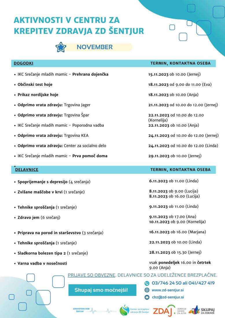 Poleg naštetega Center za krepitev zdravja ZD Šentjur v novembru pripravlja številne dogodke, najdete jih v priponkah.
