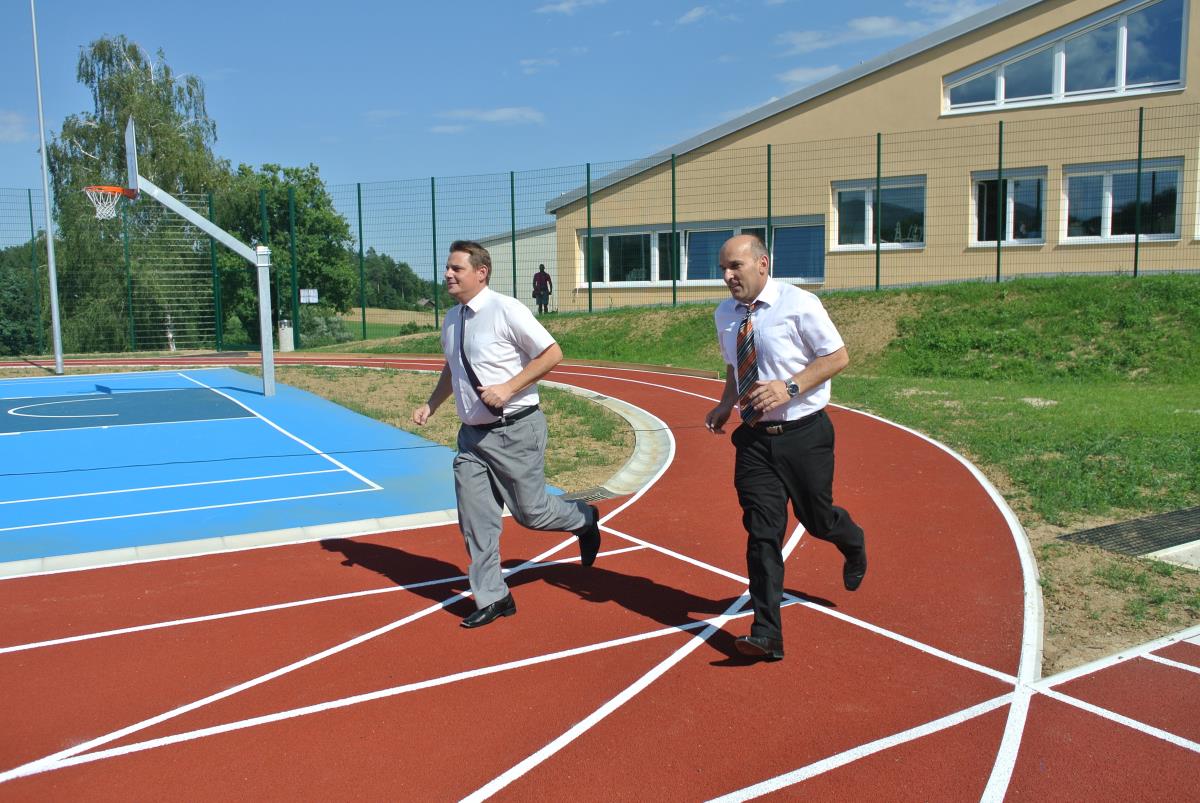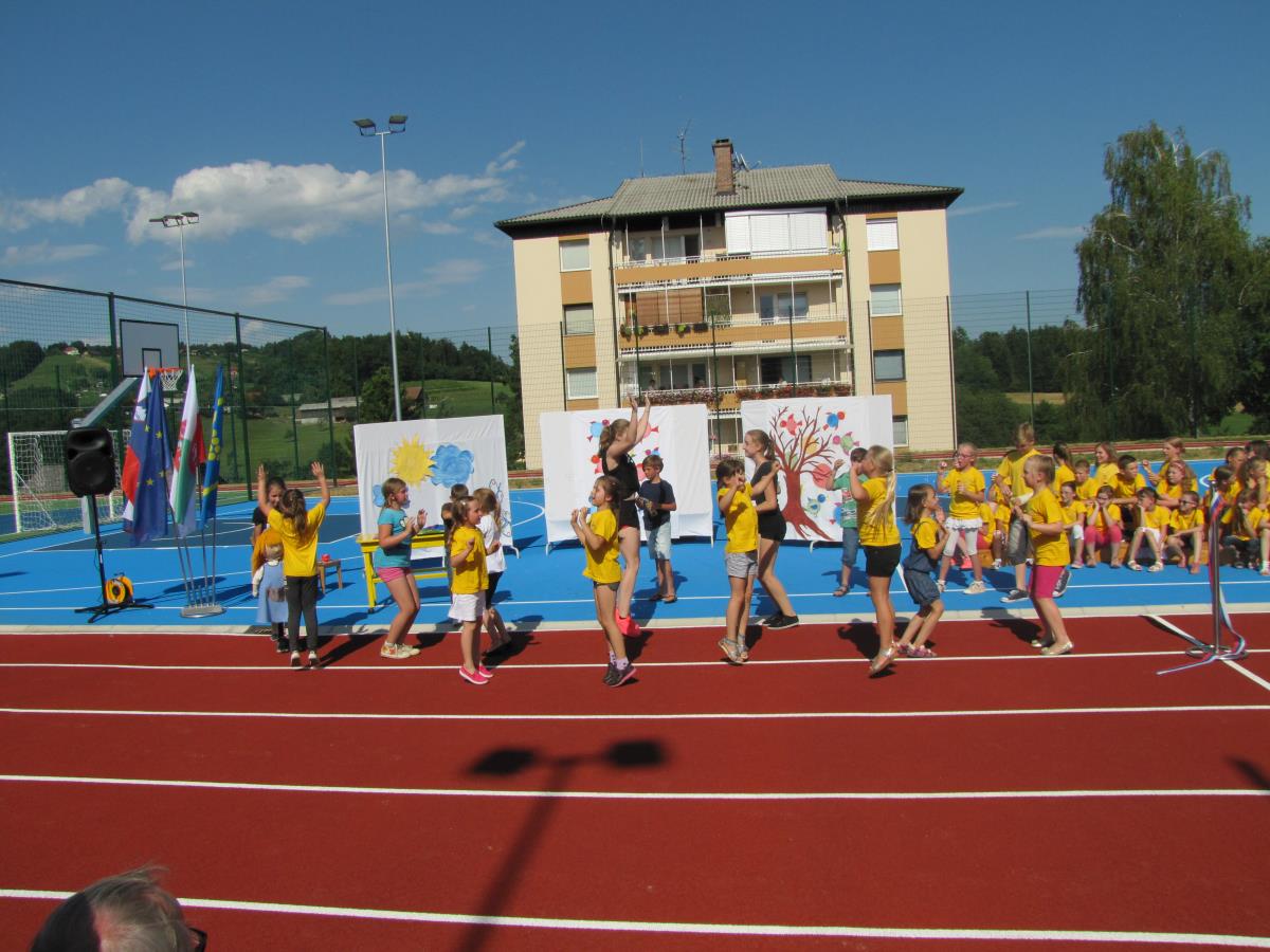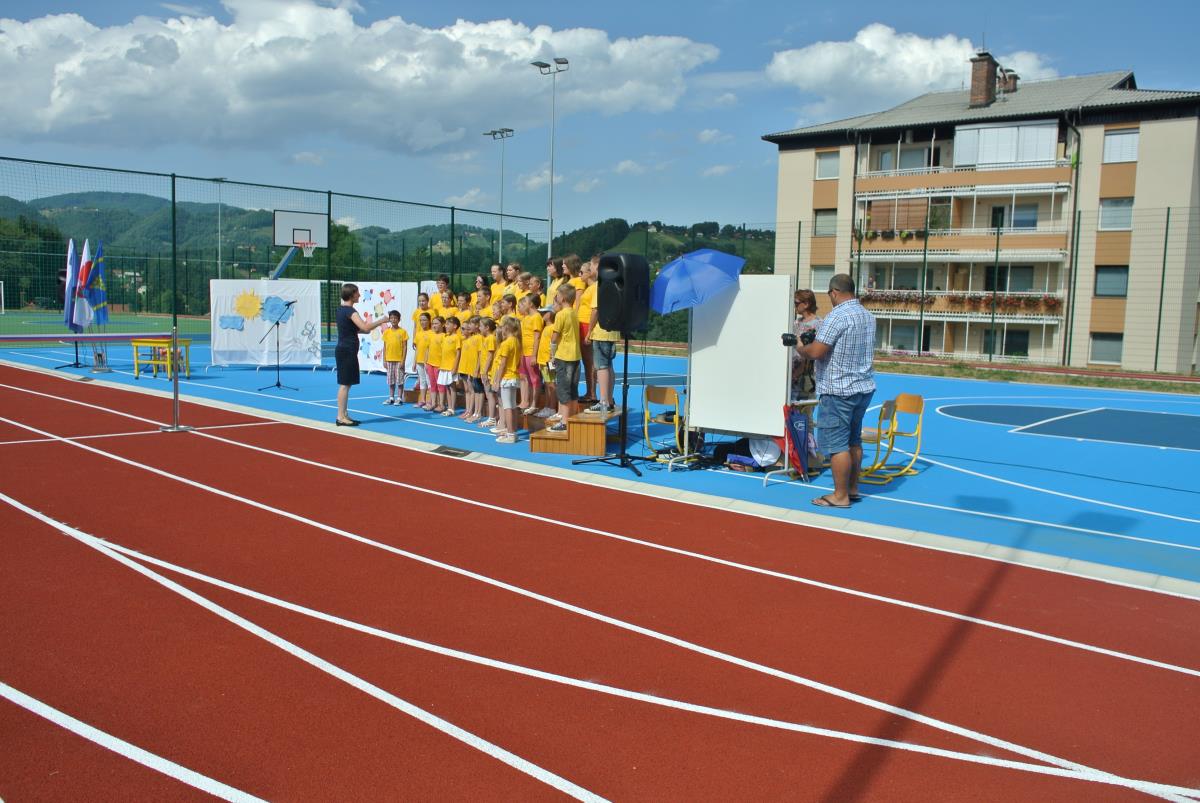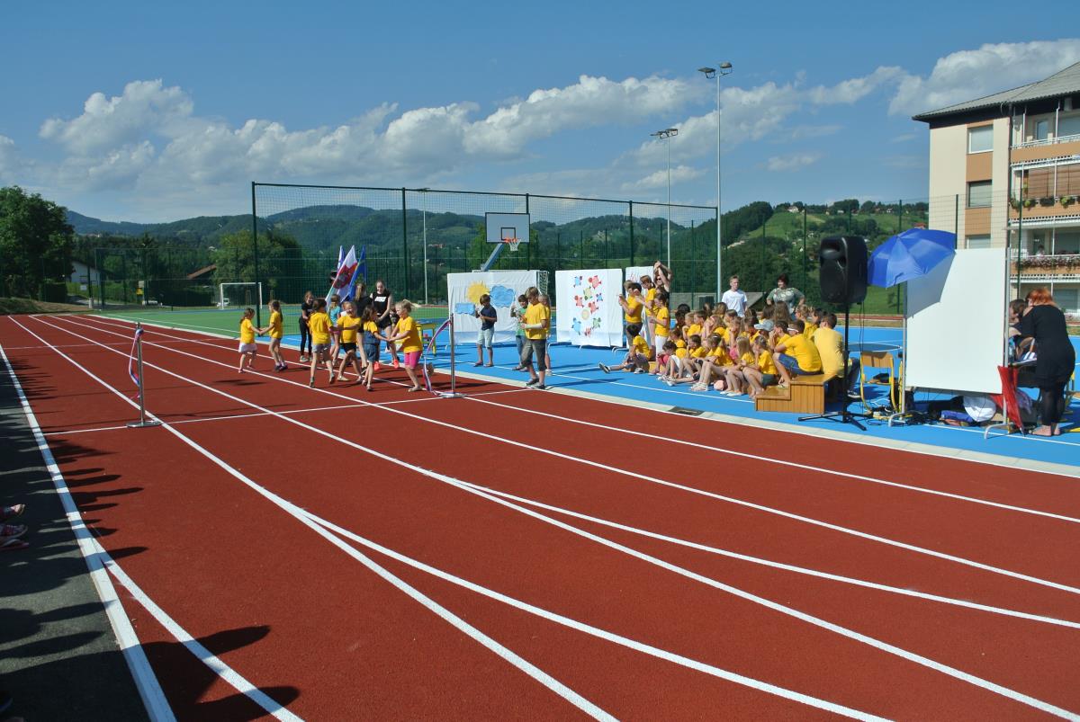 Za otvoritveni akt sta poskrbela župan in predsednik KS, ki sta odtekla krog po novi atletski stezi in ciljni krog prečkala skozi trak s trobojnico. Kasneje sta se vsak s svojo ekipo na novem igrišču pomerila še na nogometni tekmi, ki so jo dobili drameljski veterani. V Dramljah se je zares velik dan nadaljeval z drameljsko nočjo ter tekmo in veselico v organizaciji PGD Dramlje.