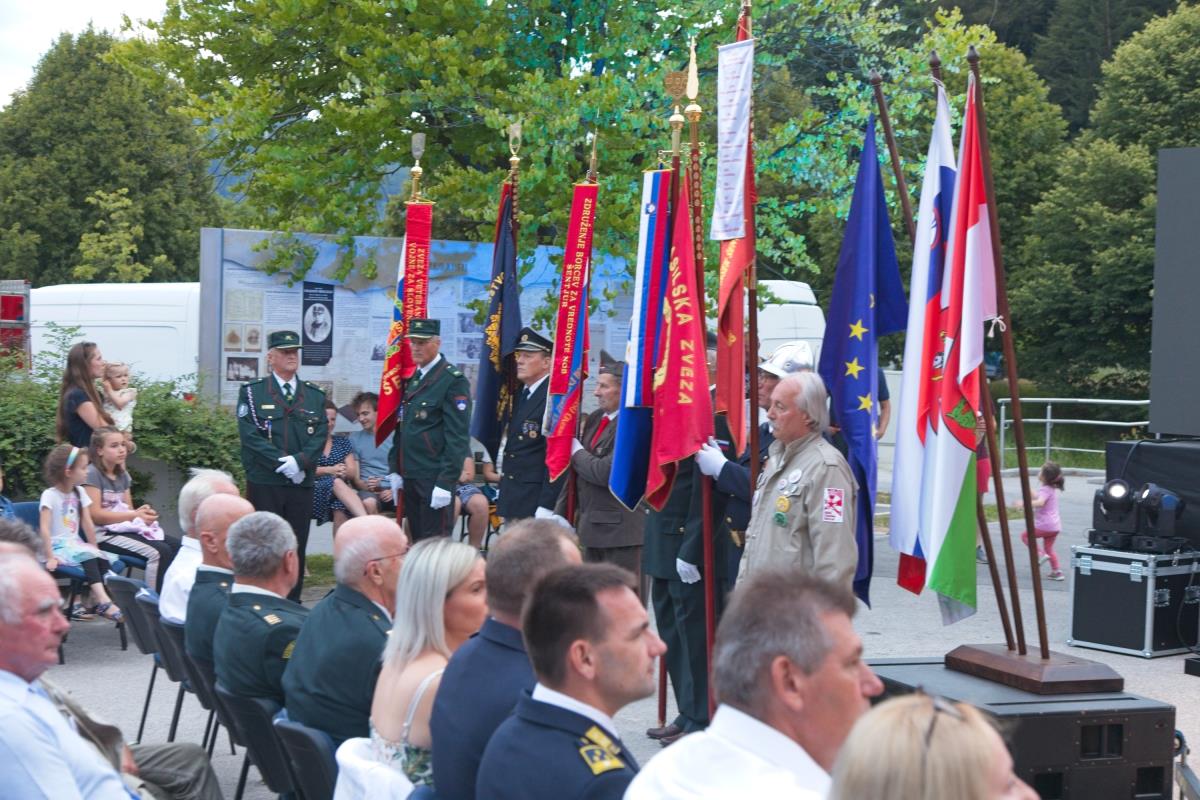 Uvodoma smo se državnemu prazniku poklonili s prihodom praporščakov, pod vodstvom veterana vojne za Slovenijo Janeza Kukoviča so na prizorišče prišli praporščaki Območnega združenja veteranov vojne za Slovenijo Šentjur, Policijskega veteranskega društva Sever za celjsko območje - Odbor Šentjur in Dobje, Združenja borcev za vrednote NOB Šentjur, Območnega združenja slovenskih častnikov Šentjur, Gasilske zveze Šentjur in Kluba brigadirjev mladinske delovne brigade Miloš Zidanšek Šentjur.