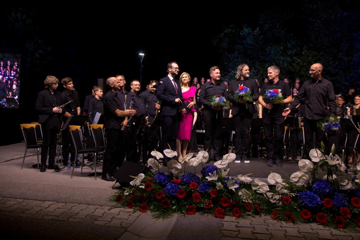 Oder so za tem zavzeli člani Pihalnega orkestra Šentjur pod taktirko Jurija Hladnika, ki so za ta večer pripravili rokersko obarvani koncert; Peter Tovornik je namreč pripravil priredbe skladb zasedb Siddharta in Deep Purple. Po udarnem uvodu so na oder stopila dekleta Dekliškega pevskega zbora Gimnazije Celje - Center pod vodstvom Davida Preložnika in zapele tri pesmi s povezujočo in miroljubno tematiko. Zatem pa je na oder stopil glasbenik Matevž Šalehar - Hamo iz zasedbe Hamo & Tribute To Love, ki je pripravil nabor svojih hitov v edinstveni izvedbi. Spremljal ga je namreč tako pevski zbor kot pihalni orkester, avtor vseh priredb pa je bil prav tako skladatelj in večstranski glasbenih ustvarjalec Peter Tovornik. Pihalni orkester Šentjur z gosti je tako ob svoji 90-letnici pripravil pravi spektakel, ki ga bodo vsi obiskovalci še dolgo pomnili. Večer sta povezovala Nastija Močnik in Vid Palčnik.