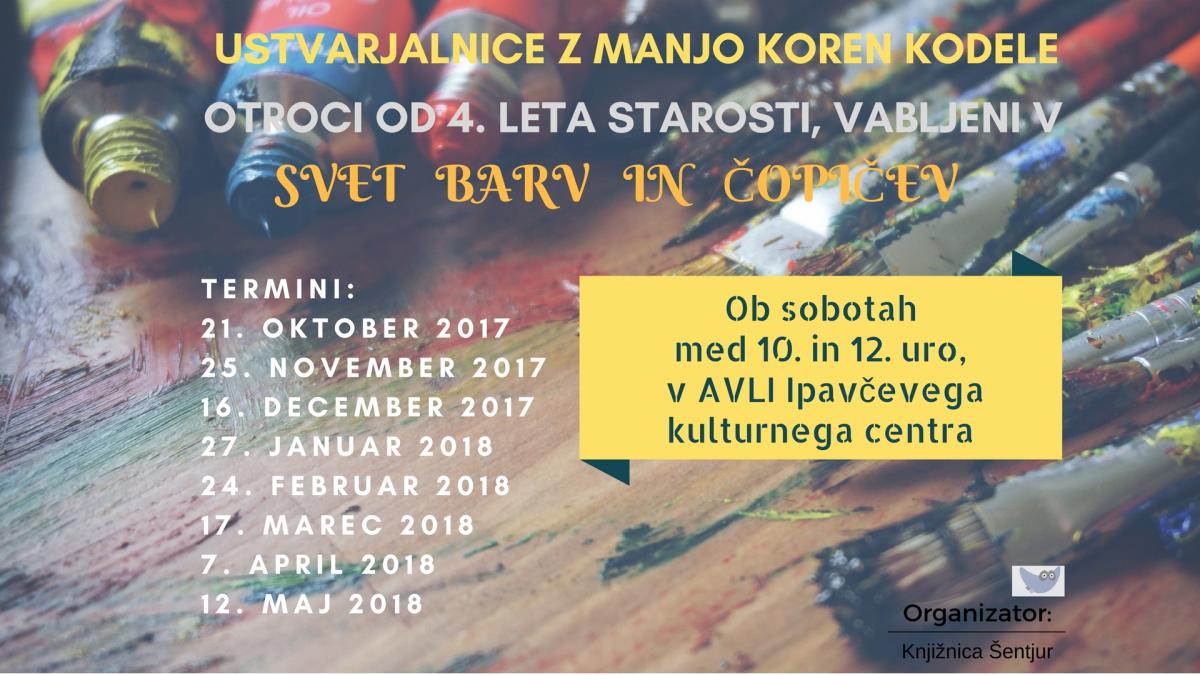 Otroci, stari štiri leta in več, vabljeni v svet barv in čopičev. Skupaj z Manjo Koren Kodele