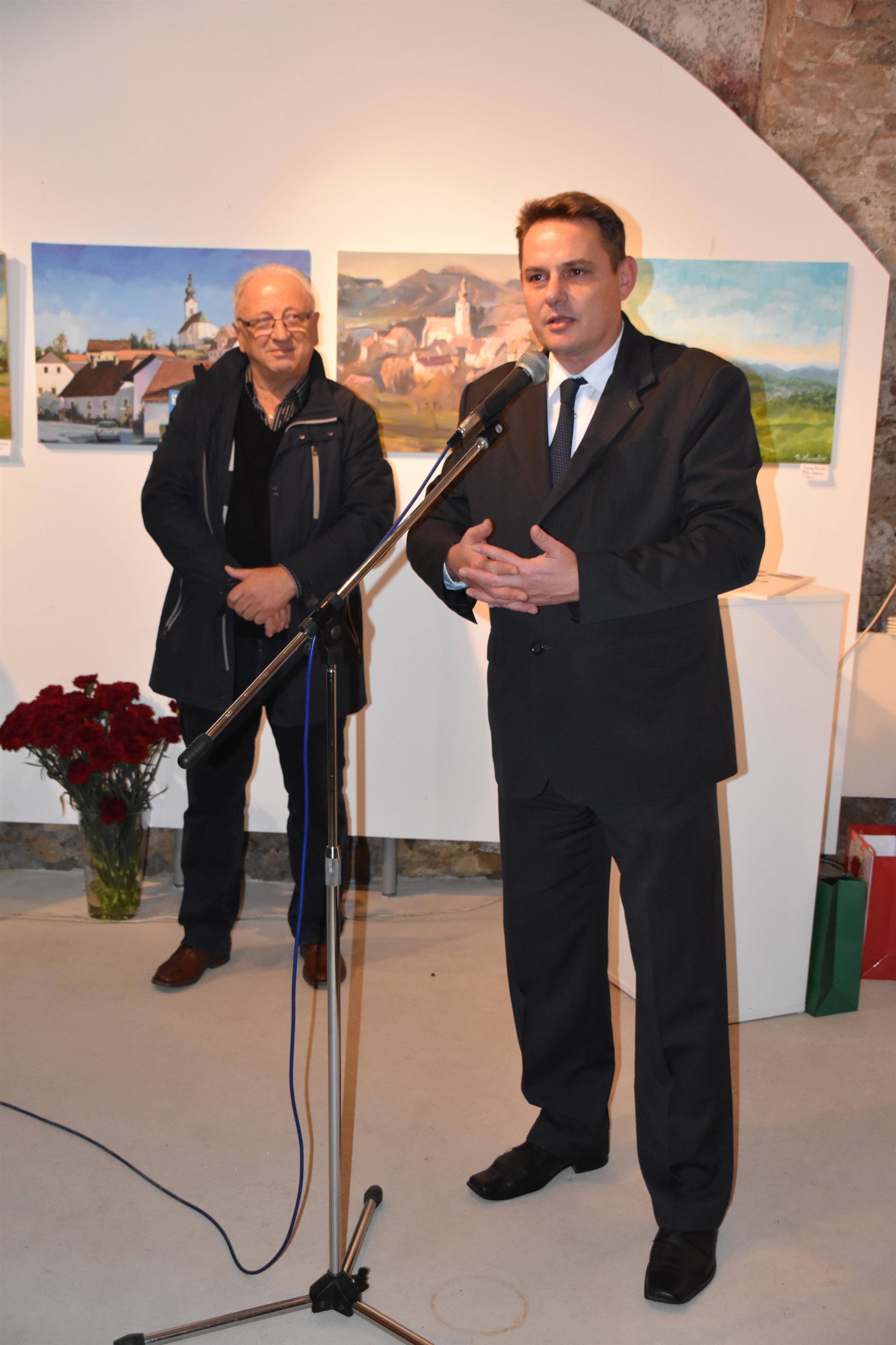tradicijah barvnega realizma in impresionizma, ohranjajoč običaj ustvarjanja na prostem. K prevladujoči krajinski motiviki rad vključuje vedute in redkeje marine, posebnost pa so njegove žanrsko navdihnjene figuralne kompozicije (kmetica, kmet, muzikantje, družba ob pijači in podobno,« je med drugim v katalogu tokratne razstave zapisala likovni kritik Mario Berdič, ki je o slikarju in razstavi spregovoril na odprtju. Za popestritev dogodka so s pesmijo poskrbele pevke Ženskega pevskega zbora Dramlje.