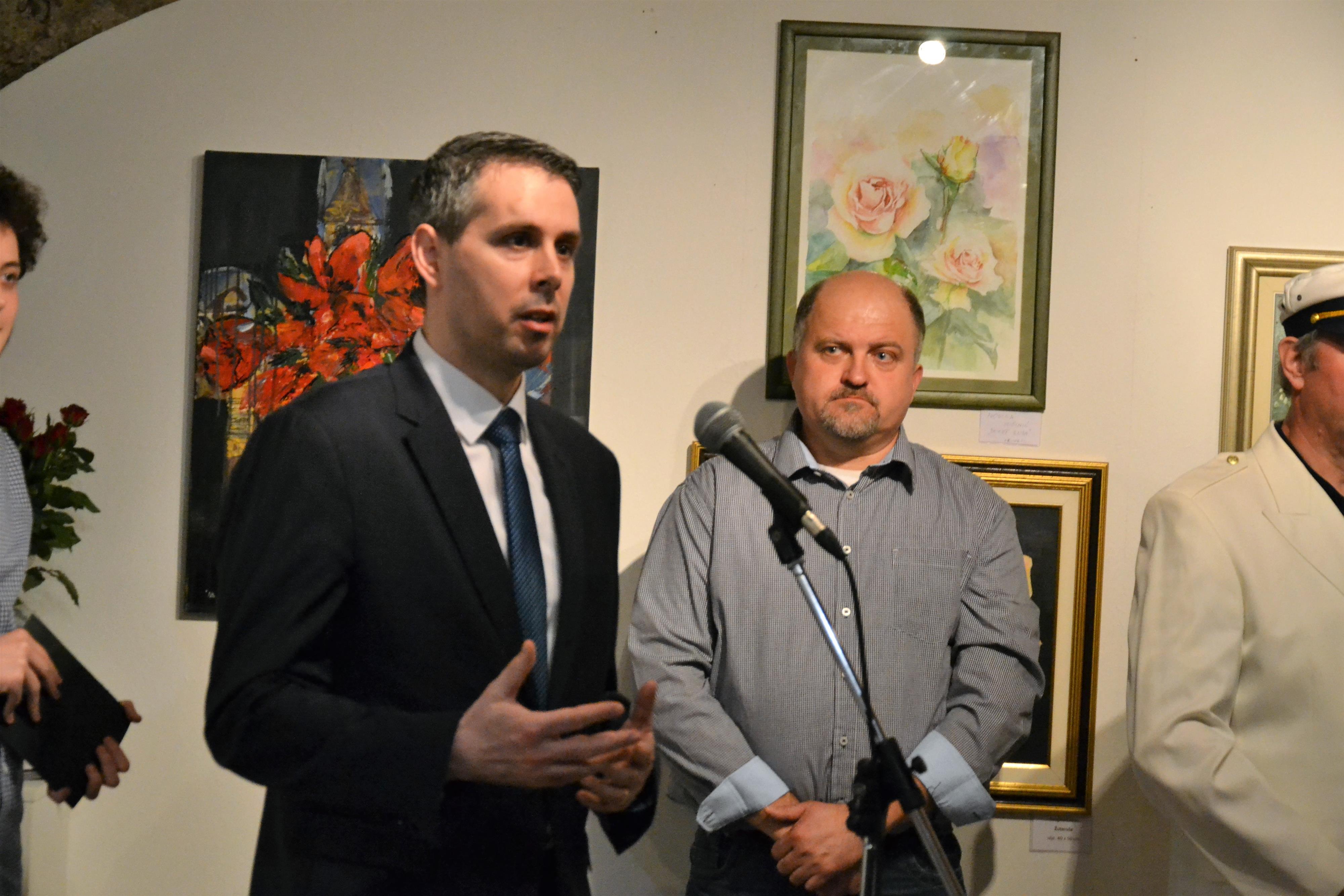 Na odprtju sta oba razstavljavca spregovorila o svojih delih in izrazila navdušenje nad sodelovanjem s šentjurskimi likovniki in možnostjo razstavljanja v tukajšnji galeriji. Dogodek je z glasbo popestrila šentjurska trojica (Ines Ljubej – tolkala, Matic Lenko – bas kitara in Primož Pečar – kitara, vokal) pod imenom Bum Kolektiv. Mladi glasbeniki ustvarjajo v kletnih prostorih nekdanje šentjurske knjižnice, ime pa so povzeli po stari prodajalni čevljev, ki je nekoč bivala v tistih prostorih.